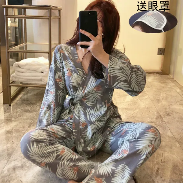 Product Name: Herfst Winter Meisjes Pijama Mujer Comfortabele Vrouwen Pyjama Sets Lange Mouw Kimono Homewear Dienen Mooie Oogmasker Nachtkleding Set