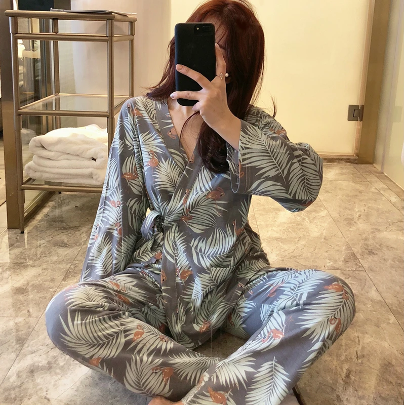 Special Offer Herfst Winter Meisjes Pijama Mujer Comfortabele Vrouwen Pyjama Sets Lange Mouw Kimono Homewear Dienen Mooie Oogmasker Nachtkleding Set Discount 23% Today!