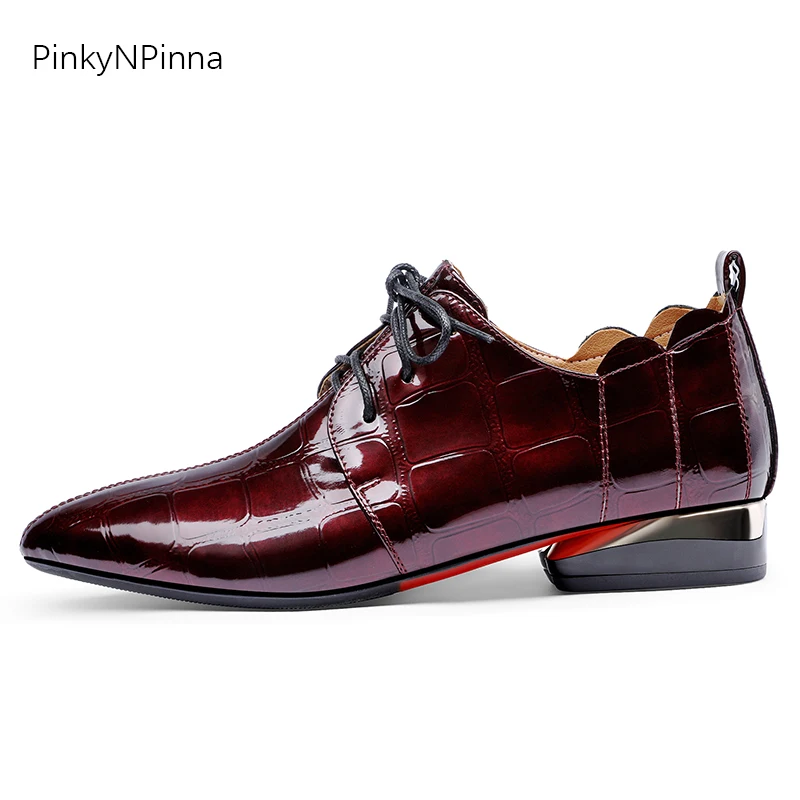Special Offer Office dames lakleer shining aligator patroon metallic lage hakken ruches vrouwen commuter zomer herfst Oxford chic schoenen Discount 29% Today!