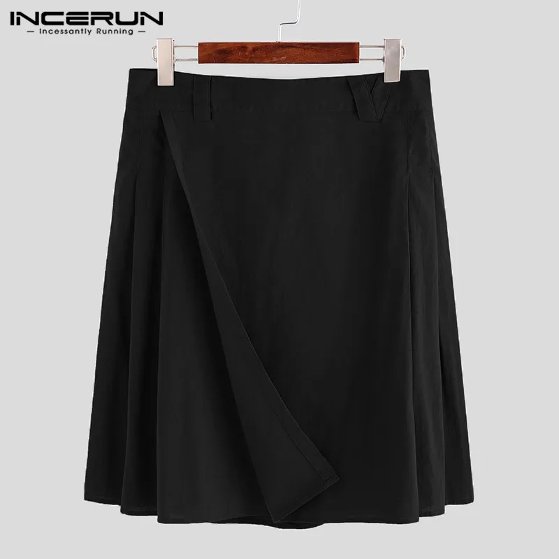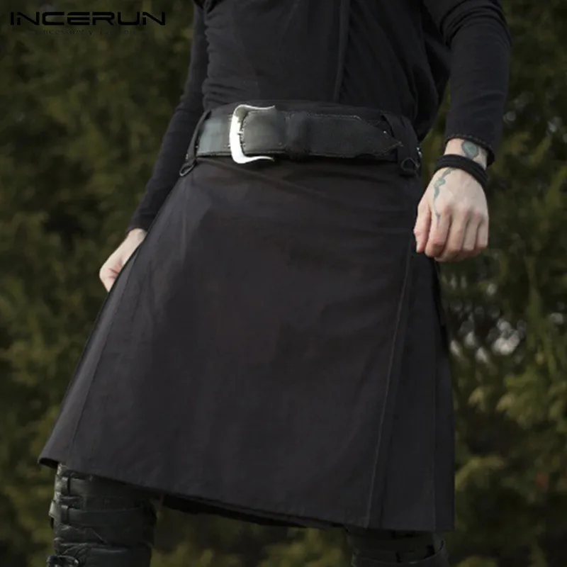 Special Offer INCERUN Mannen Schotse Vakantie Jurk Heren Traditionele Rok Steampunk Kilt Retro Pure Kleur Rits Mode Comfort Rokken Discount 45% Today!