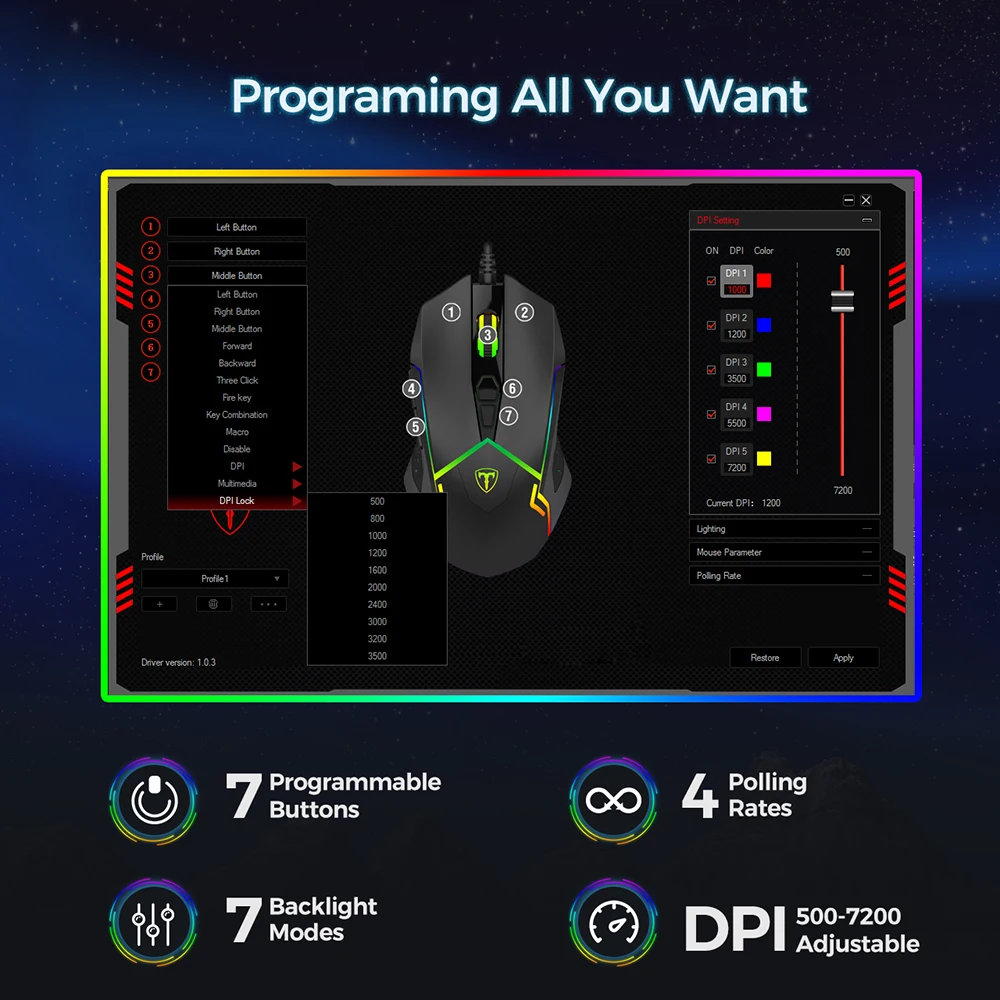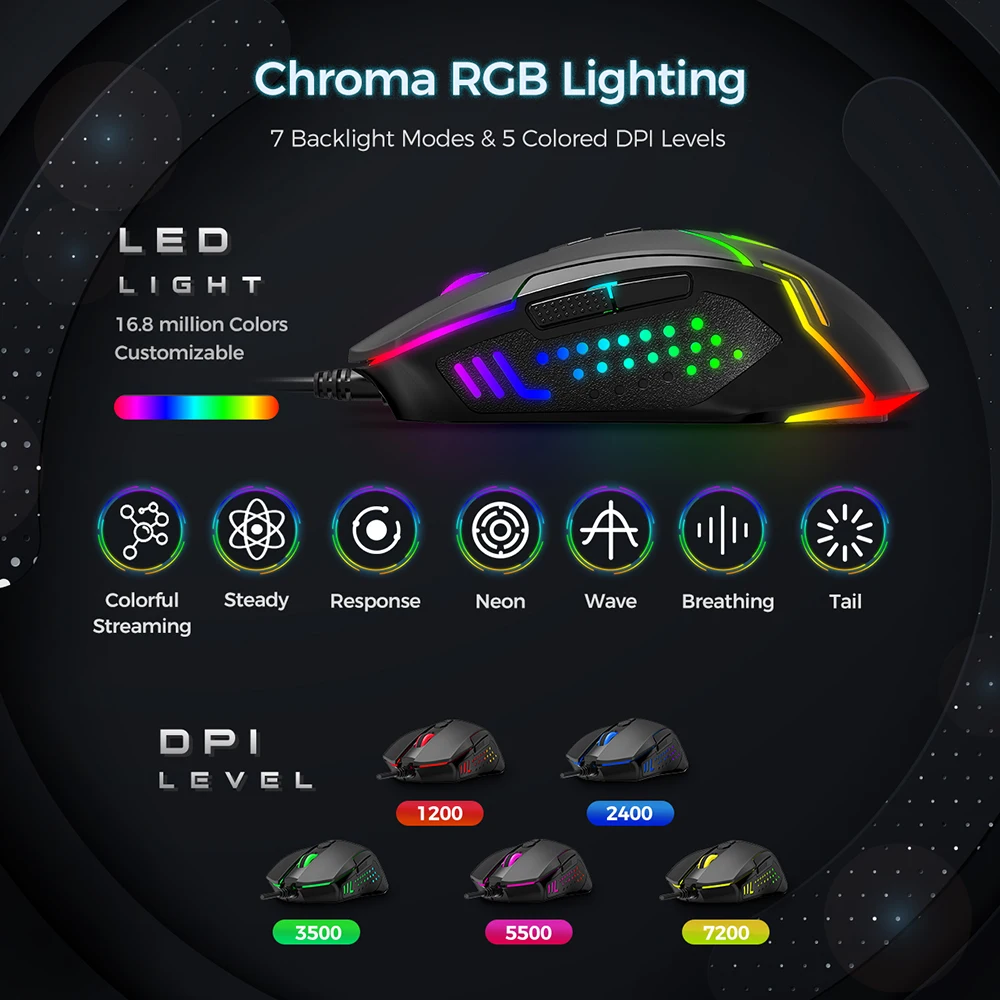 Product Name: Victsing PC233 Gaming Muis Bedraad 7200 Dpi Verstelbare Muis 7 Programmeerbare Knoppen Rgb Backli Ergonomische Usb Computer Muizen Voor Pc