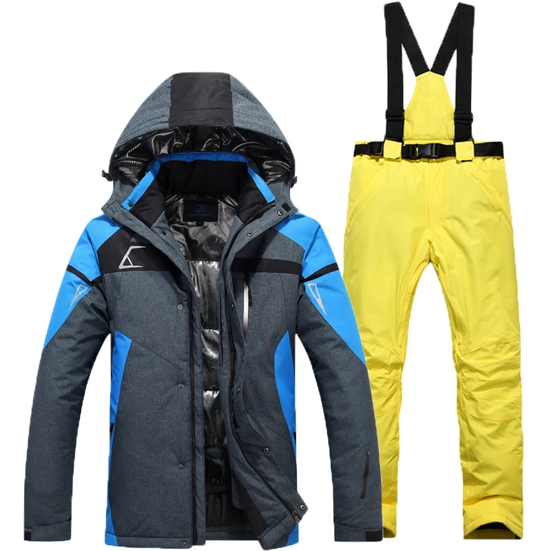 Product Name: Outdoor Wear Camping Paardrijden Skiën Snowboard Super Warme Jas + Broek Set Gratis Verzending Mannen Skipak mannen Winddicht waterdicht