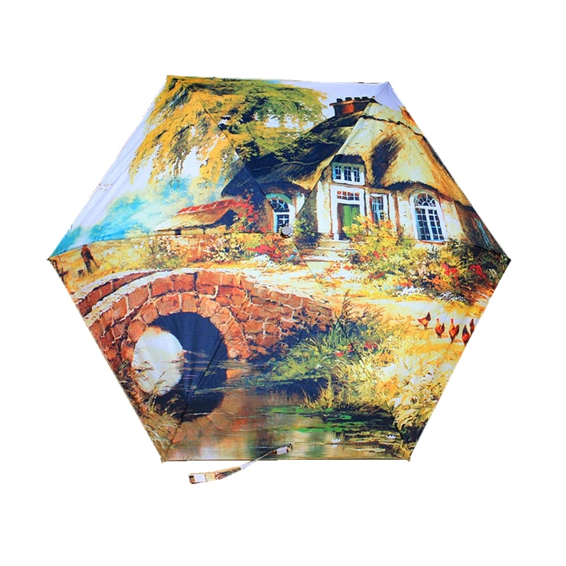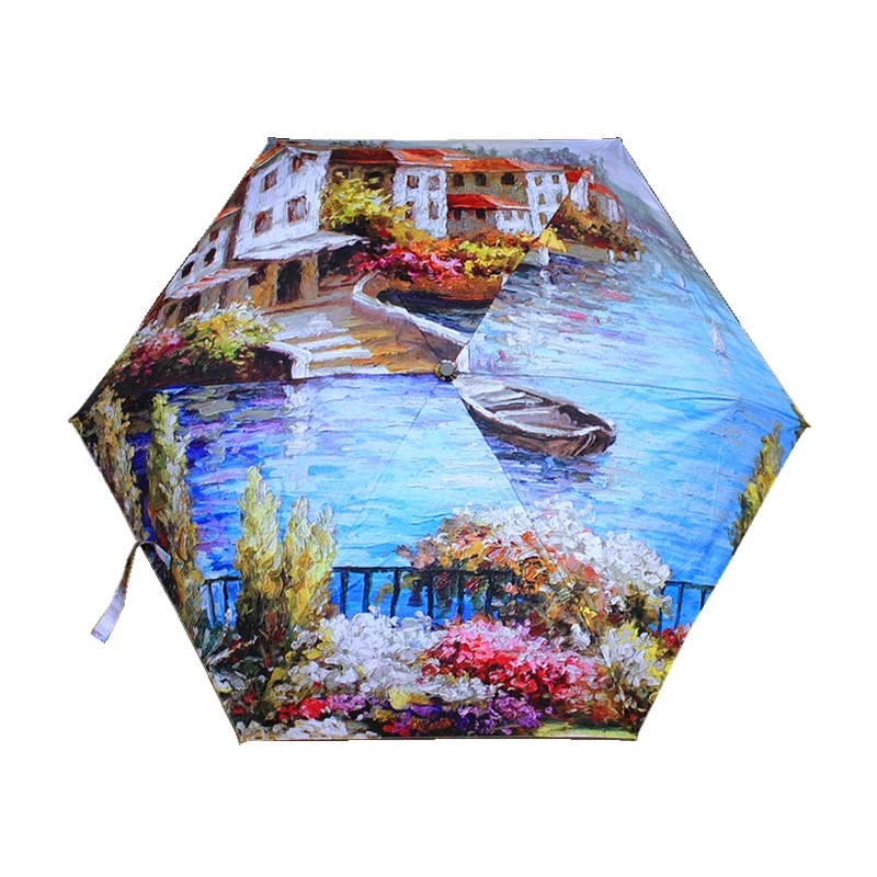 Product Name: Mini Pocket Paraplu Vrouwen Olieverf Paraplu Winddicht Opvouwbare Paraplu Voor Mannen Compact Regen Vrouwelijke Paraplu Zonnescherm