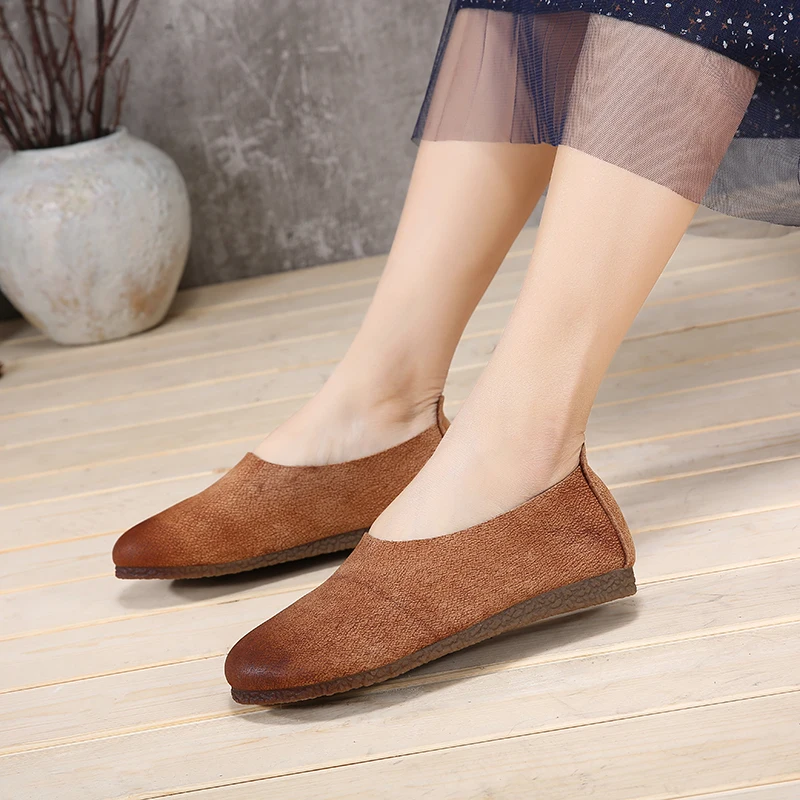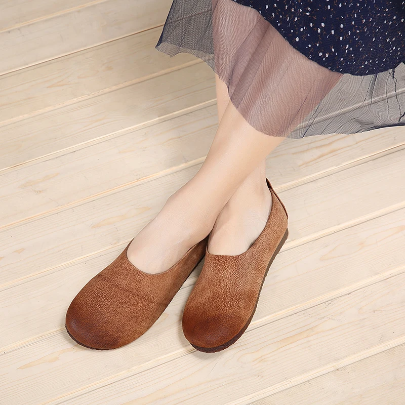 Product Name: Comfort Slip On Vrouwen Platte Schoenen Handgemaakte Lederen Dame Casual Flats Ronde Neus Outdoor Vintage Vrouwelijke Ondiepe schoenen