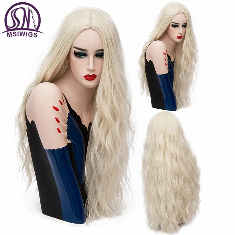 Special Offer MSIWIGS 70 CM Lange Roze Golvend Pruiken Cosplay Natuurlijke Synthetische Vrouwen Blonde Pruik 29 Kleuren Hittebestendige Haar Discount 28% Today!