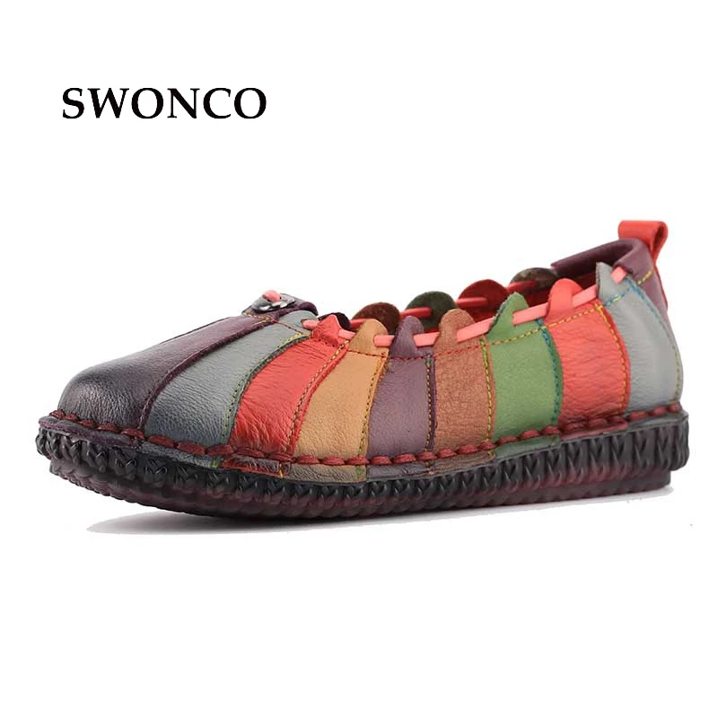 Special Offer Fashion Design Regenboog Kleur Vrouwen Platte Schoenen Echt Leer Vrouwen Ondiepe Vintage Schoenen Mode Naaien Slip On Meisje Loafers Discount 40% Today!