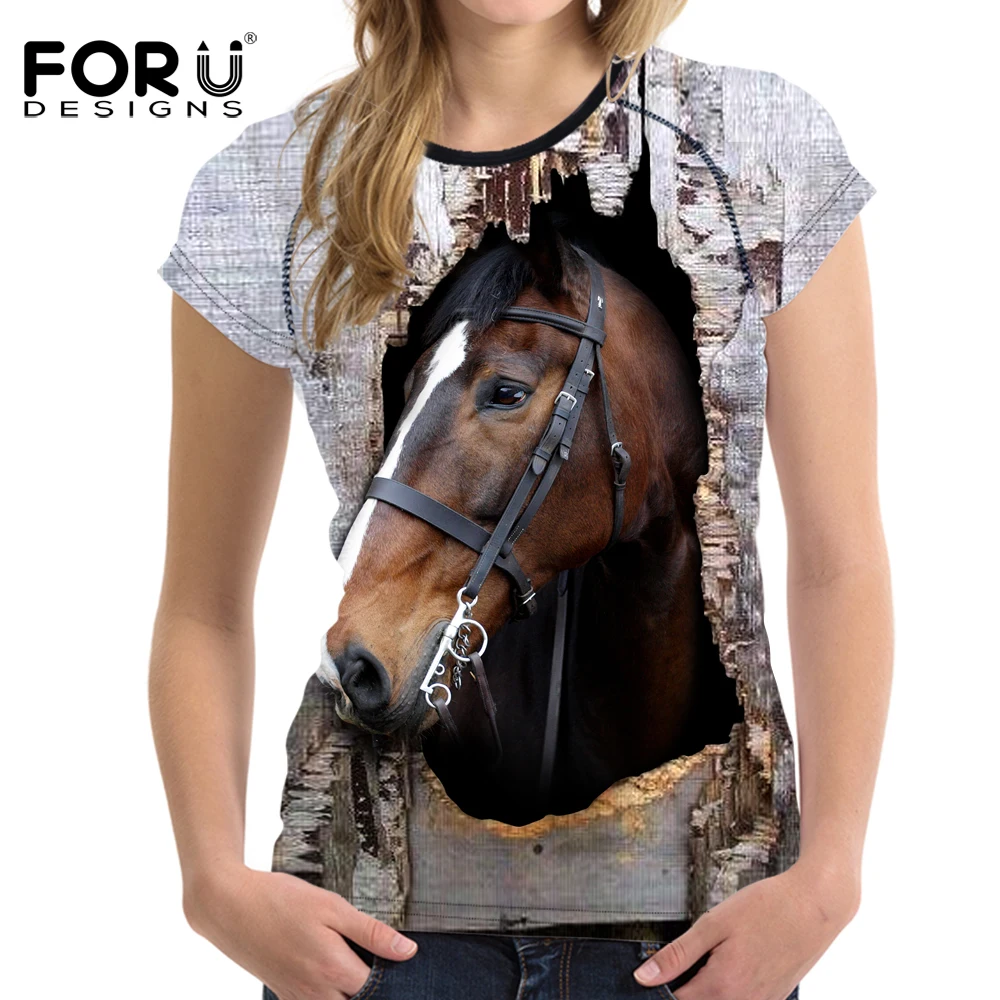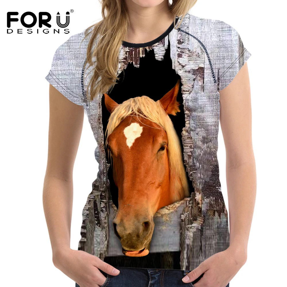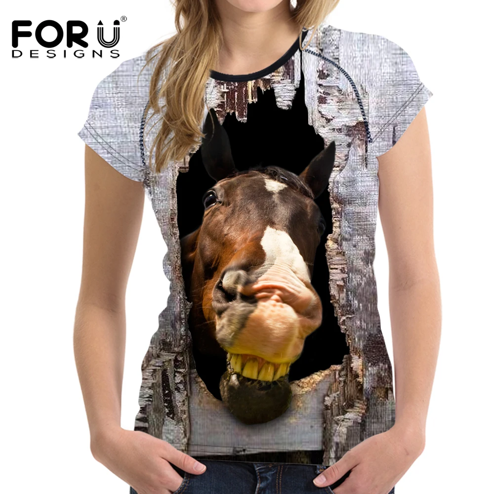 Special Offer FORUDESIGNS 3D Crazy Horse Vrouwen T shirt Zomer Casual Vrouwelijke Korte Mouwen Top Tees Animal Printing Dames Comfortabele Tee Shirt Discount 44% Today!
