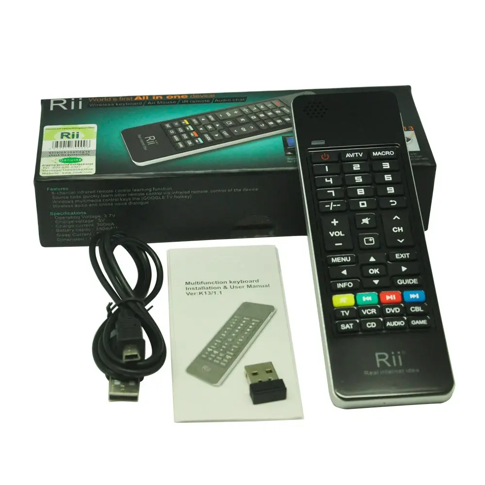Product Name: Rii K13 Russisch Frans Spaans Mini Draadloos Toetsenbord Fly Air Muis Combo Mircophone Speaker IR Afstandsbediening leren Voor PC TV Box