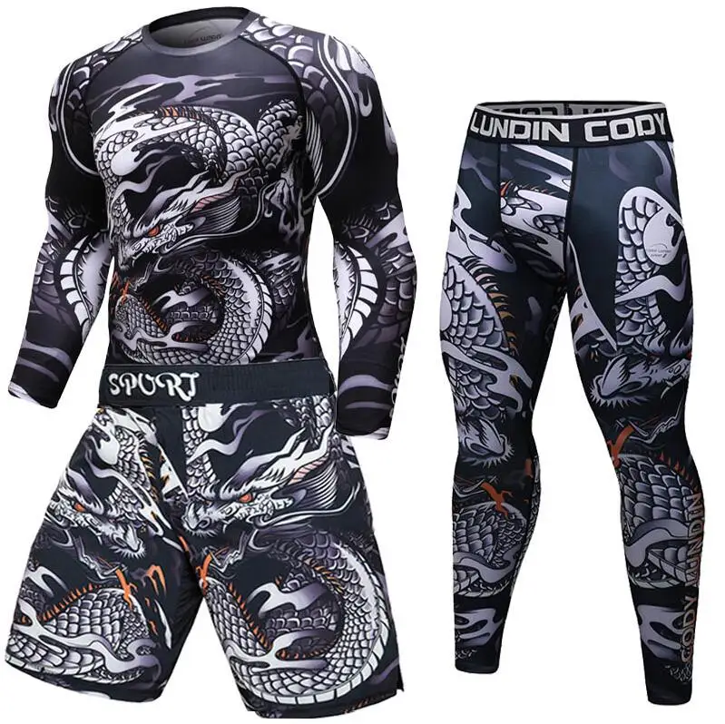 Product Name: Mannen fitness 3D Chinese draak patroon Cosplay MMA fitness mannen compressie lange mouw top grappige T shirt mode mannen s sport