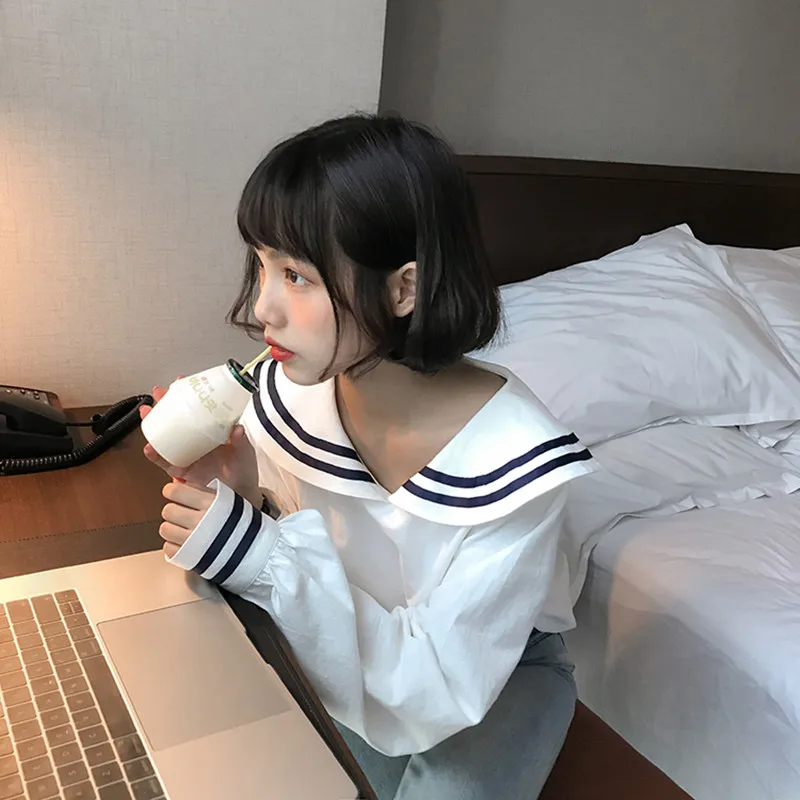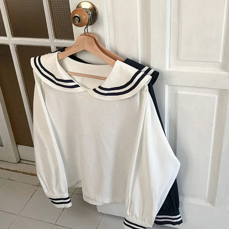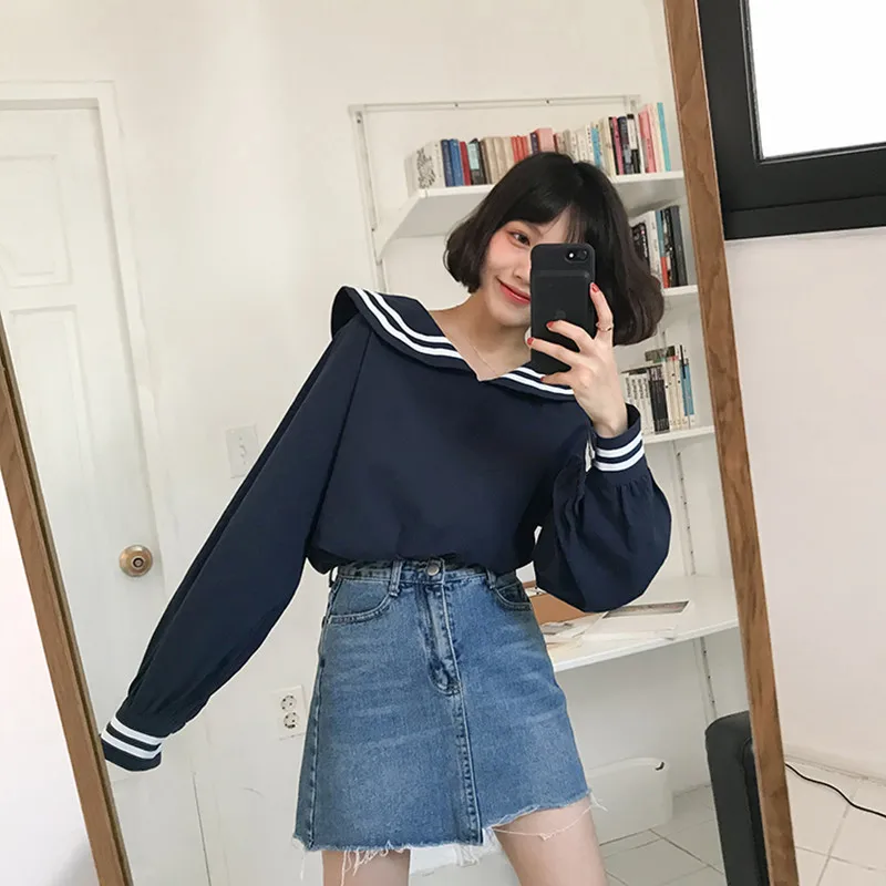 Special Offer 2 kleuren 2018 herfst marine kraag Lange Mouwen Shirts Vrouwen Lente All Match Casual Blouse Shirt Jas Vrouwelijke Blusas (F3574) Discount 20% Today!