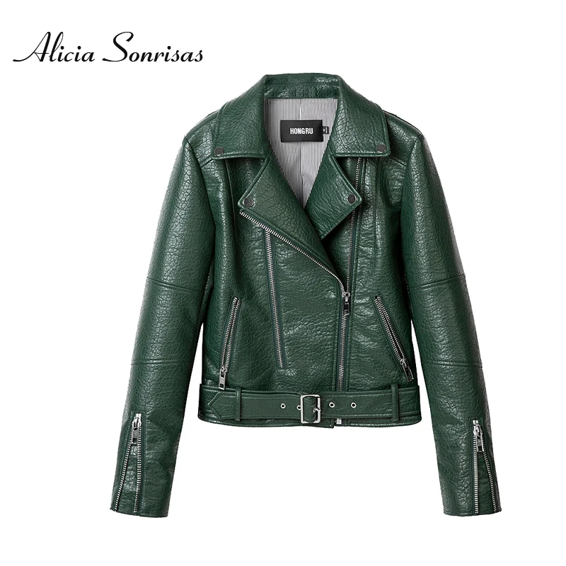 Special Offer 2019 Herfst Leren Jas Vrouwen Groen Korte Motorfiets PU Lange Mouw High End Lederen 3 Kleuren Biker Jas HR1018 Discount 34% Today!