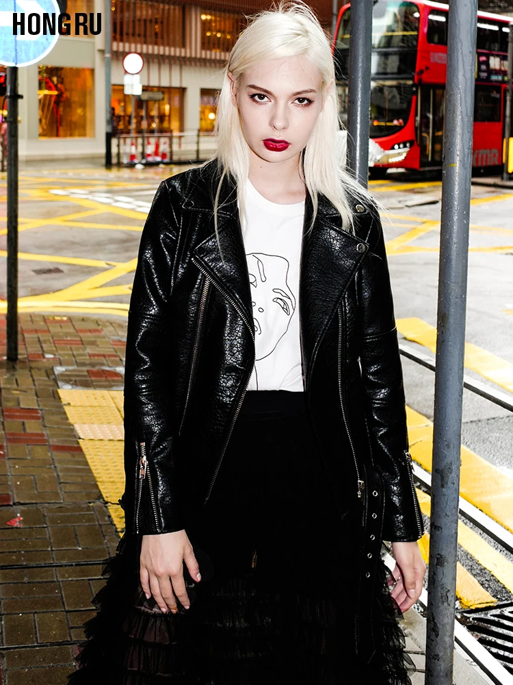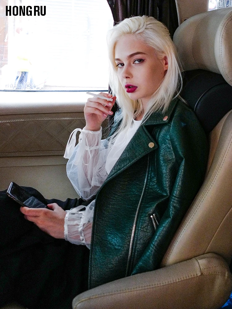 Product Name: 2019 Herfst Leren Jas Vrouwen Groen Korte Motorfiets PU Lange Mouw High End Lederen 3 Kleuren Biker Jas HR1018