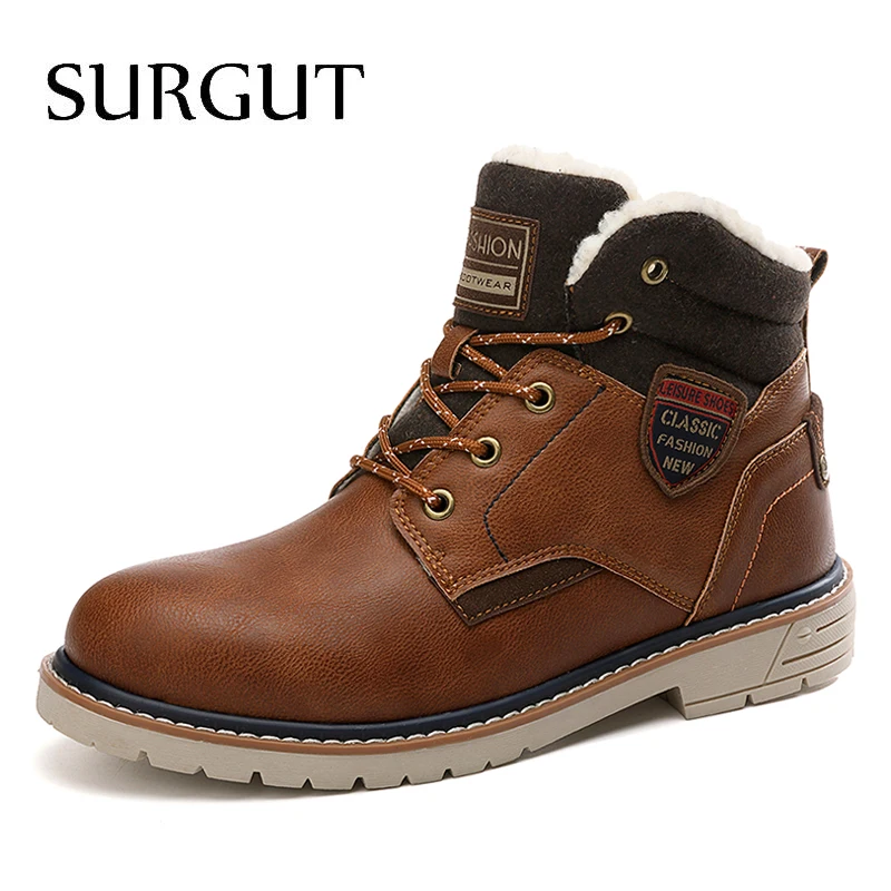 Special Offer SURGUT 2020 Nieuwe Winter Warm Bont Mannen Laarzen Leren Waterdichte Snowboots Outdoor Woestijn Schoenen Comfortabele Motorfiets Enkellaarsjes Discount 45% Today!