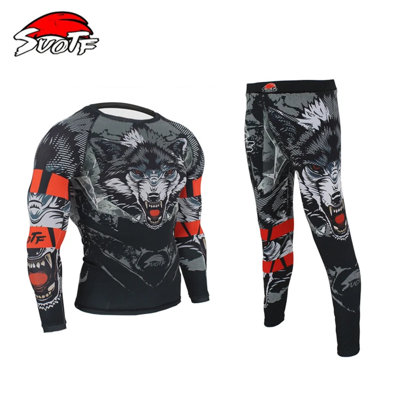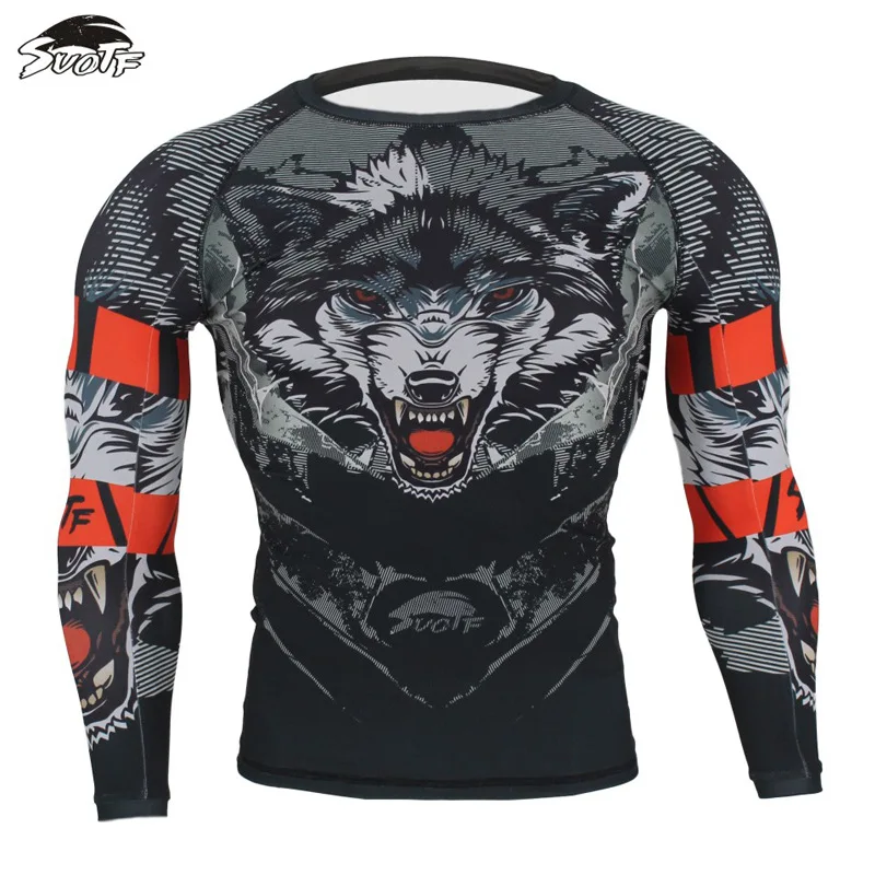 Product Name: 3D Wolf Printing MMA Rashguard Boksen Set Compressie Jersey Broek Kickboksen Strakke Lange T Shirt Broek Muay Thai Fightwear