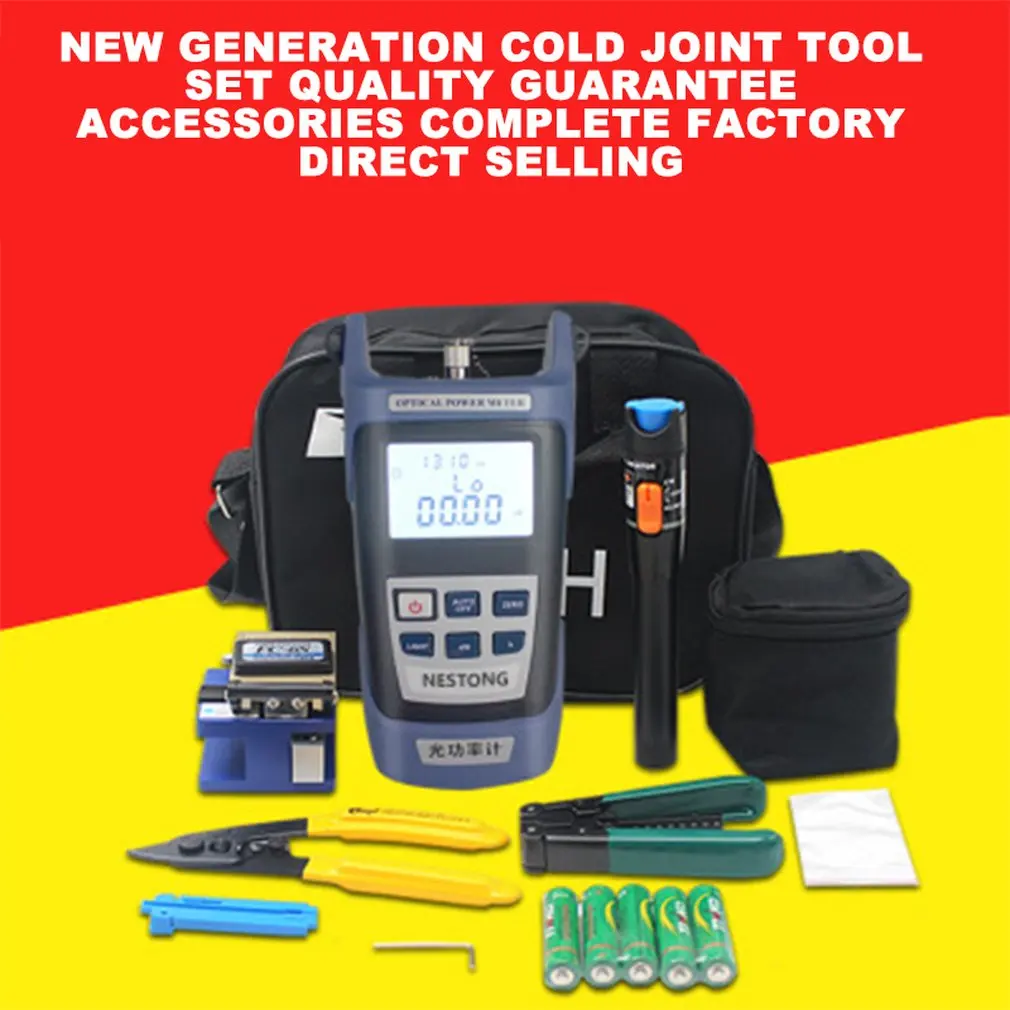 Product Name: Lederen Glasvezel Koude Junction Kit Pakket Fiber Test Rood Licht Pen Snijmes Optische Power Meter Striptang