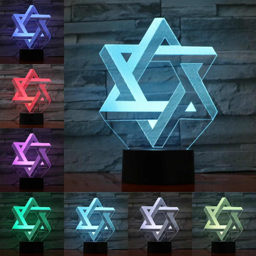 Special Offer Hexagram 3D Ster Van David Nachtlampje LED 7 Kleuren Stemming Tafellamp USB Slaapkamer Bed Slaap Licht Armatuur Thuis decor Kids Geschenken Discount 35% Today!