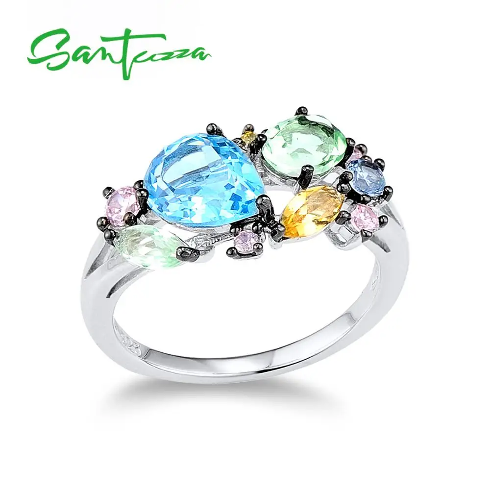 Special Offer Santuzza Zilveren Ring Voor Vrouwen 925 Sterling Zilveren Glanzende Multi color Gem Stones Voor Vrouwen Elegant Party Mode sieraden Discount 49% Today!