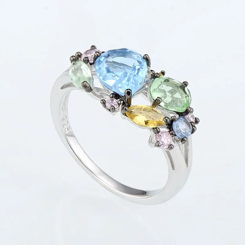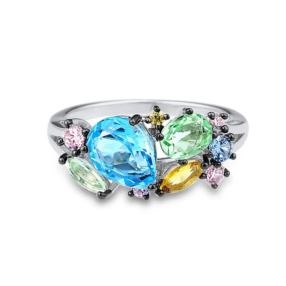 Product Name: Santuzza Zilveren Ring Voor Vrouwen 925 Sterling Zilveren Glanzende Multi color Gem Stones Voor Vrouwen Elegant Party Mode sieraden