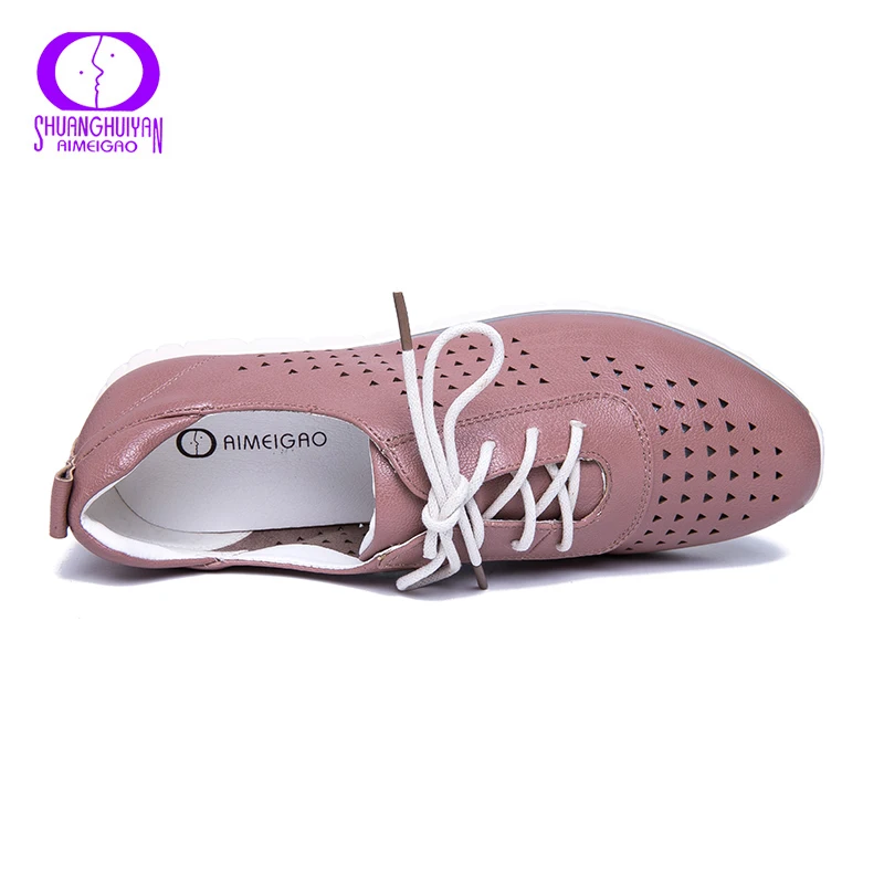 Product Name: AIMEIGAO 2019 Nieuwe Lace Up Flats Schoenen Zacht Leer Comfort Schoenen Voor Vrouwen Hollow Out Ademende Casual Schoenen Herfst En lente