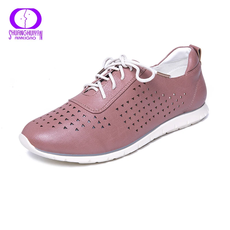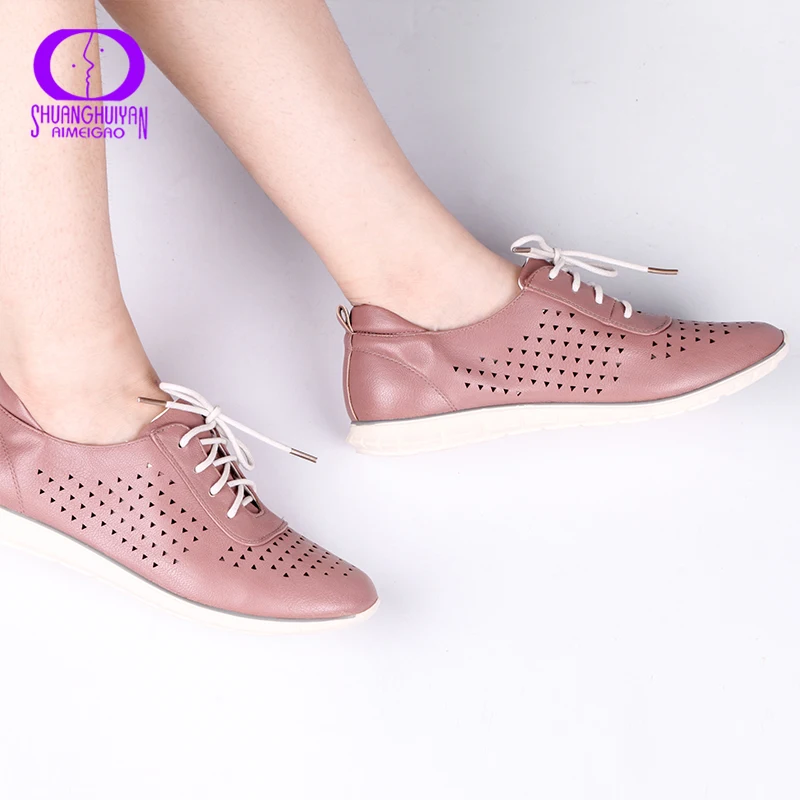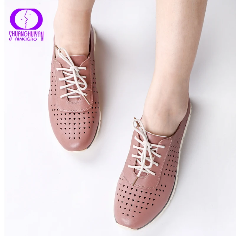 Special Offer AIMEIGAO 2019 Nieuwe Lace Up Flats Schoenen Zacht Leer Comfort Schoenen Voor Vrouwen Hollow Out Ademende Casual Schoenen Herfst En lente Discount 60% Today!