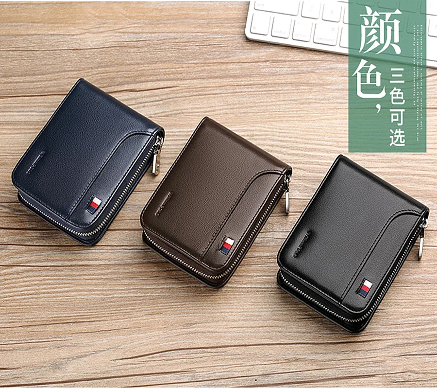 Product Name: 2019 Hoge Kwaliteit Korte Rits Zwarte Mannen Portefeuilles Merk Echt Lederen Portefeuilles Kaarthouder Heren Portemonnee 13 Kaarthouders PL175112