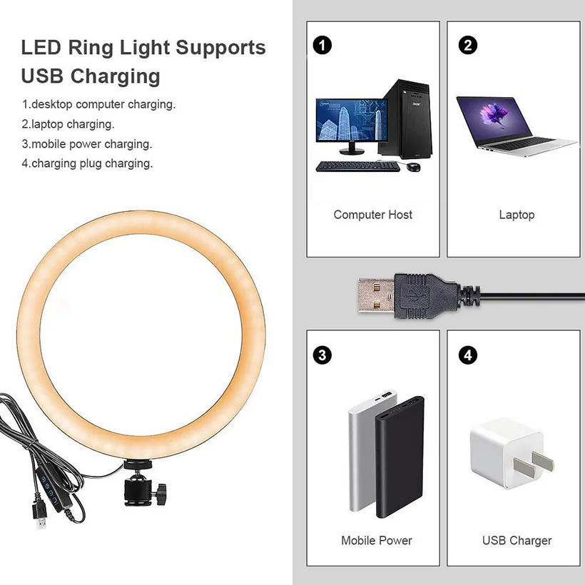 Product Name: Ring Lamp Video 16 26 Cm Dimbare Led Selfie Ring Licht Usb Fotografie Licht Met Statief Voor Telefoon make Up Youtube Tik Tok