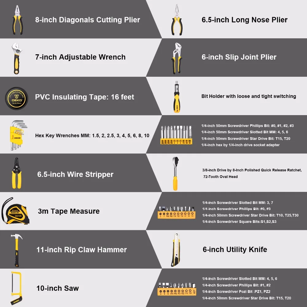 Product Name: DEKO 168 Pcs Handgereedschap Set Algemene Huishoudelijke Hand Tool Kit met Plastic Toolbox Opslag Case Dopsleutel Schroevendraaier Mes