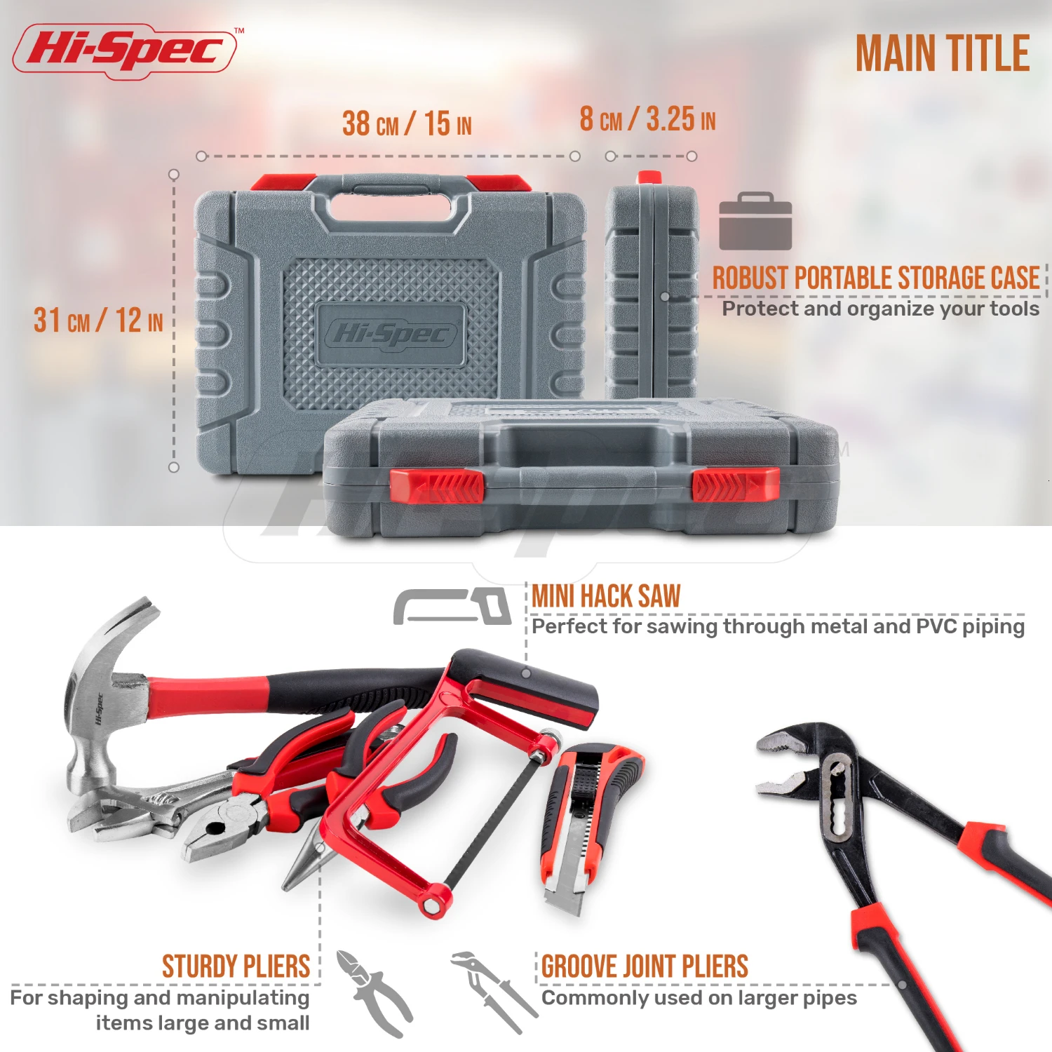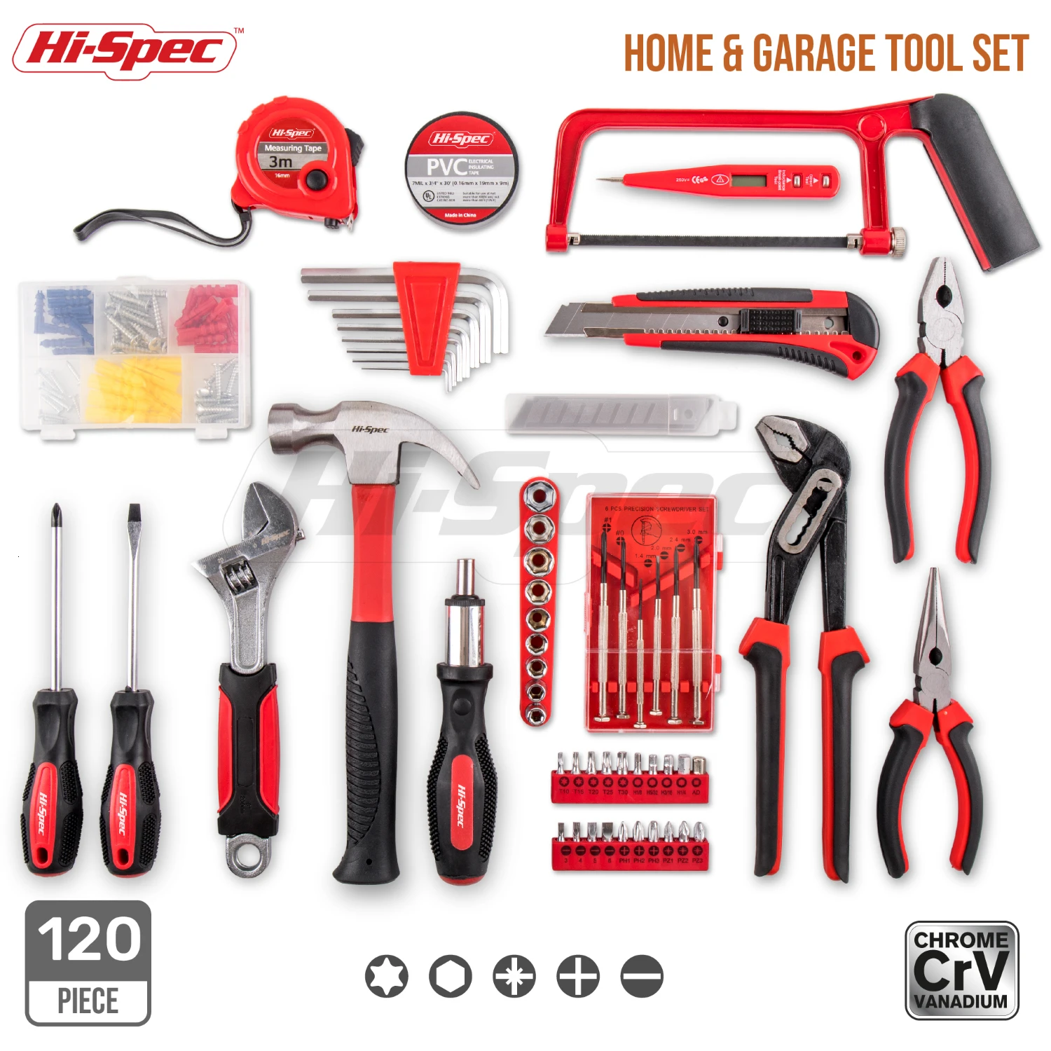 Product Name: Hi Spec120 Stuk Thuis Hand Tool Set Diy Tool Kit Set Met Handgereedschap Tang Hamer Schroevendraaier Metric Stopcontacten In Plastic toolbox