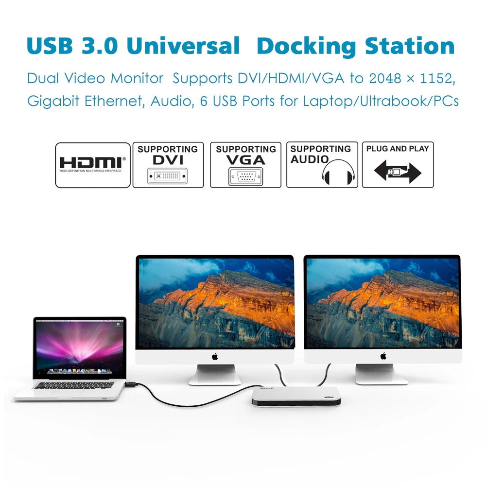 Product Name: Wavlink Universele Usb 3.0 Docking Station Dual Video Display Monitor RJ45 Gigabit Ethernet Ondersteuning 1080P Dvi Hdmi vga Voor Laptop
