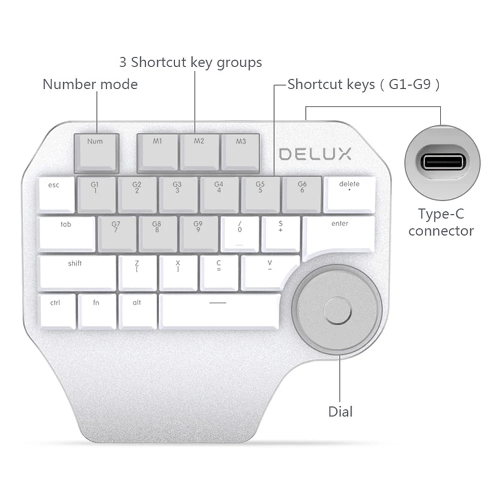 Product Name: Delux T11 Designer Enkele Hand Ergonomisch Toetsenbord + Oppervlak Wijzerplaat + M618 Mini Draadloze Bluetooth Verticale Muis Combo Voor Laptop