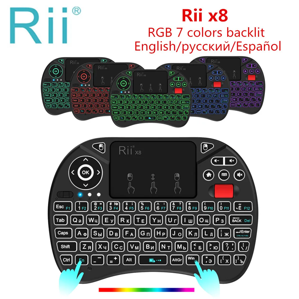 Special Offer Originele Rii X8 2.4 Ghz Air Mouse I8x Rgb 7 Kleuren Backlit Wireless Mini Keyboard Handheld Touchpad Gaming Voor Android tv Box Pc Discount 19% Today!