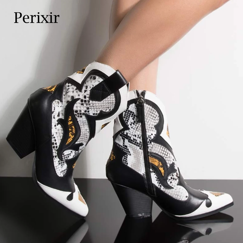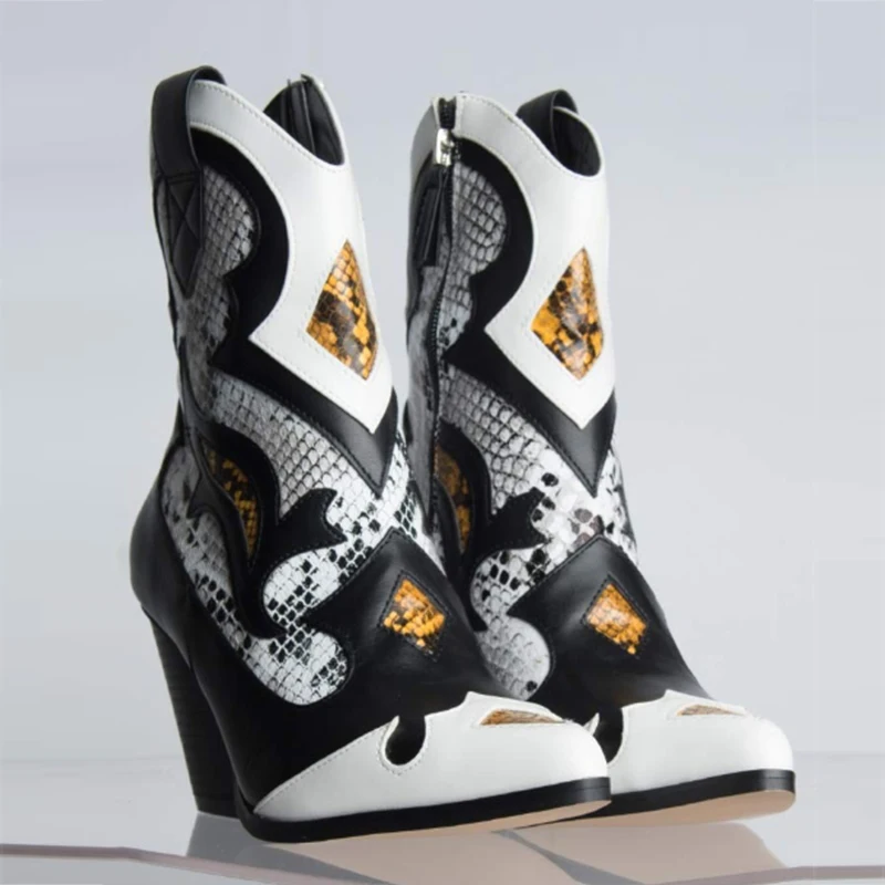 Product Name: 2019 Herfst Nieuwe Retro PU Lederen Enkellaarsjes Vrouw Wees Teen Microfiber Gemengde Kleur Lage Hak Laarzen Vrouwen Cowboy Laarzen femme