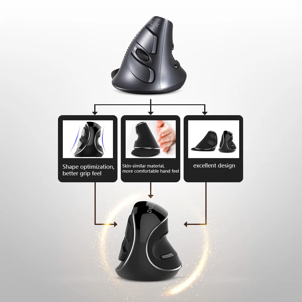 Product Name: Delux M618 Plus Ergonomische Verticale Draadloze Muis DPI 1600 6 Functie Knoppen Optische Muizen met Verwijderbare Polssteun Voor Computer