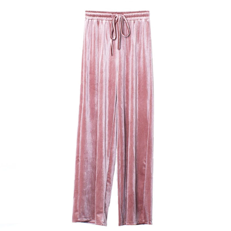 Product Name: Hoge Taille Pleuche Wijde Pijpen Broek Vrouwen Hot Koop Effen Kleuren Elastische Taille Lace Up Losse Broek Femme Casual Joggingbroek s 2XL