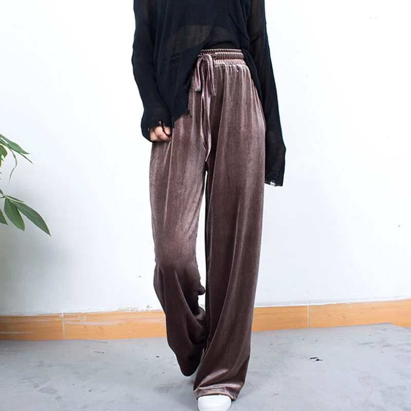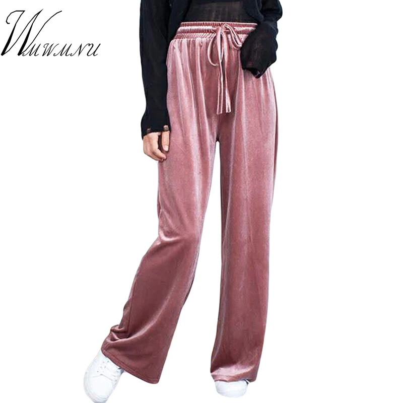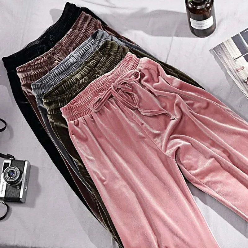 Special Offer Hoge Taille Pleuche Wijde Pijpen Broek Vrouwen Hot Koop Effen Kleuren Elastische Taille Lace Up Losse Broek Femme Casual Joggingbroek s 2XL Discount 49% Today!