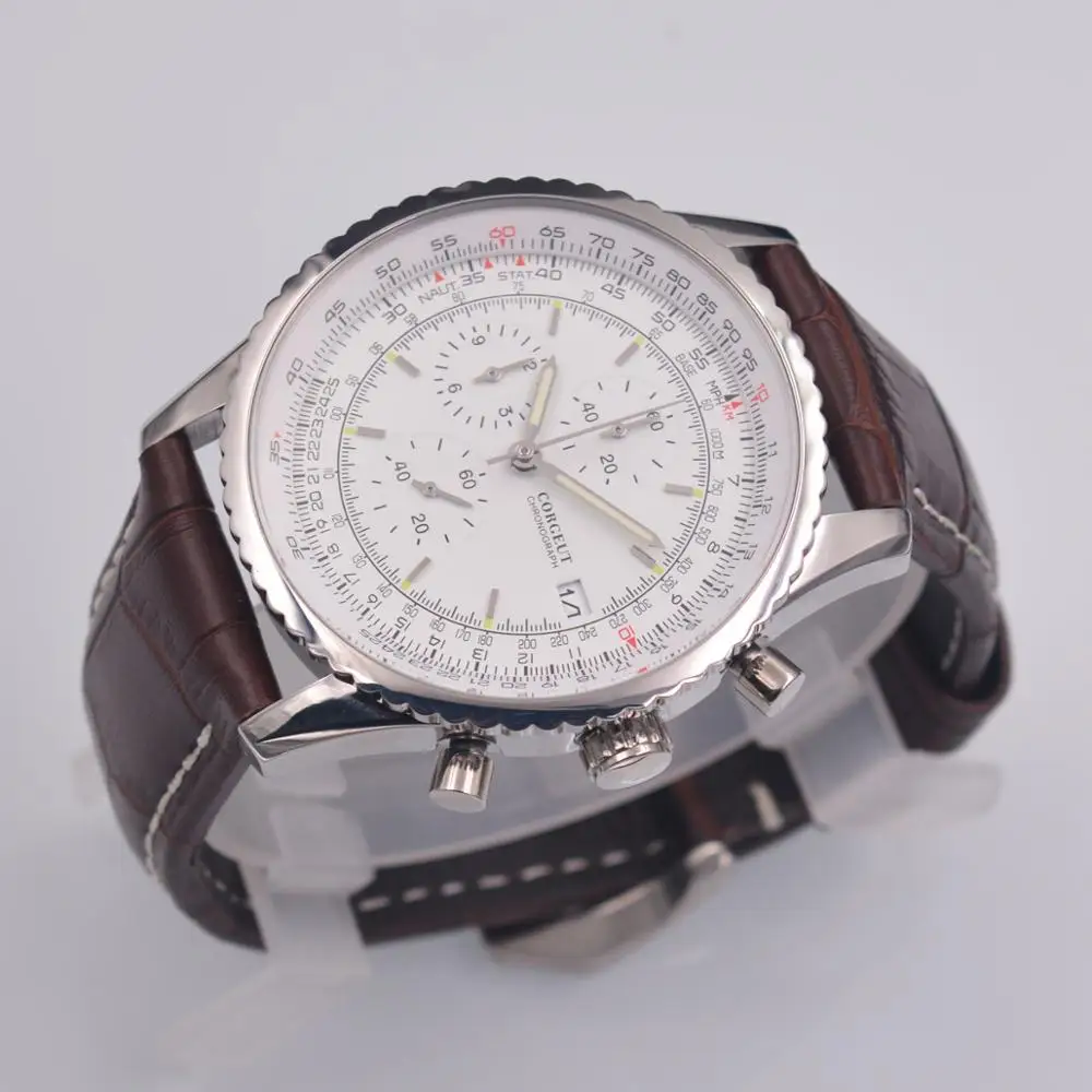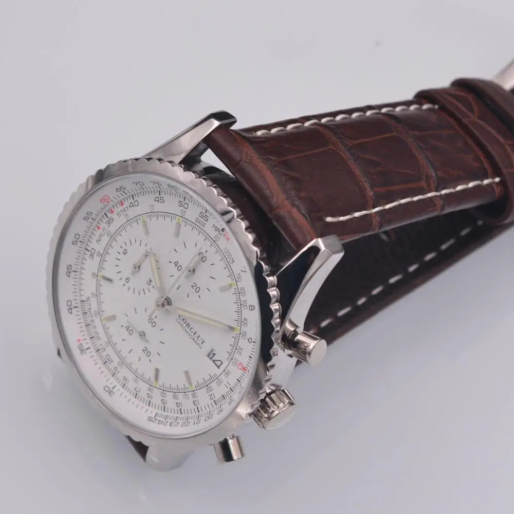 Special Offer 46mm lederen band crrju мужские часы cadisen relojes Quartz horloges horloge mannen relogio masculino 316 S waterdicht Auto datum Discount 49% Today!
