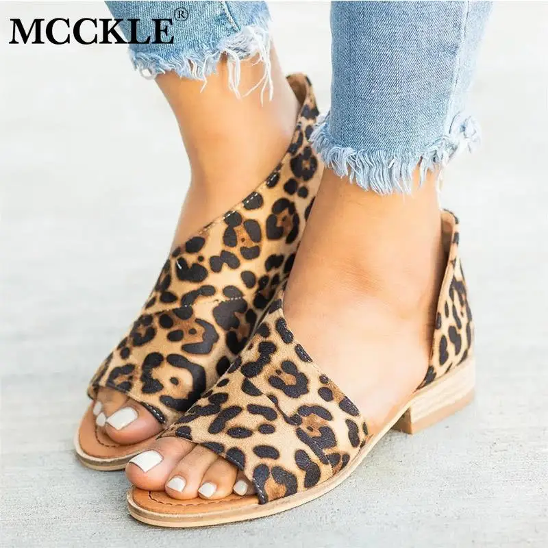 Special Offer MCCKLE Zomer Vrouwen Luipaard Sandalen Cover Hak Schoenen Vrouwelijke Peep Toe Sandalen Lage Hak Suede Retro Comfortabele Casual Schoenen Discount 50% Today!