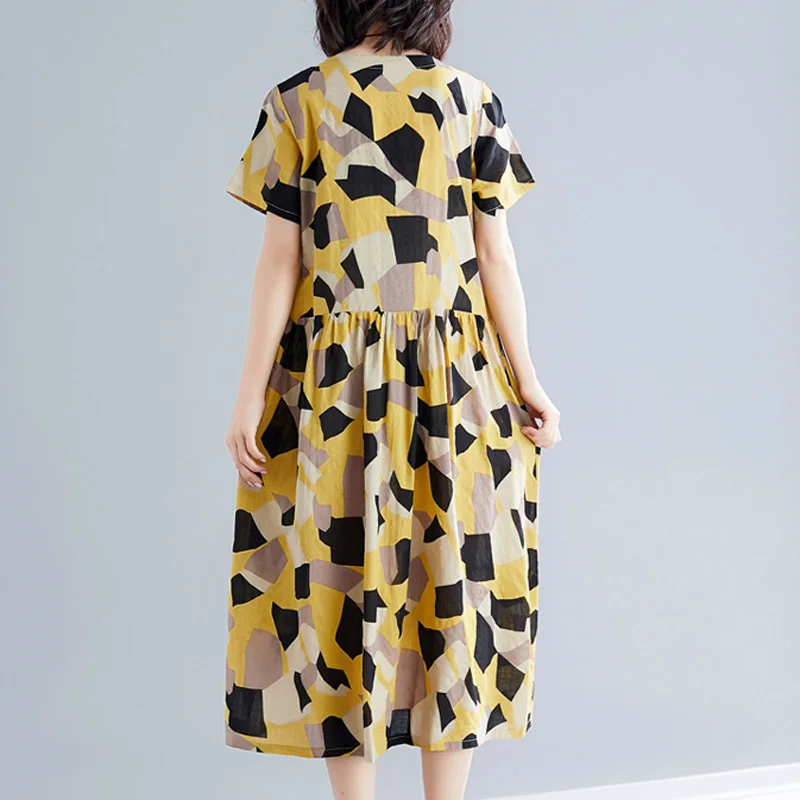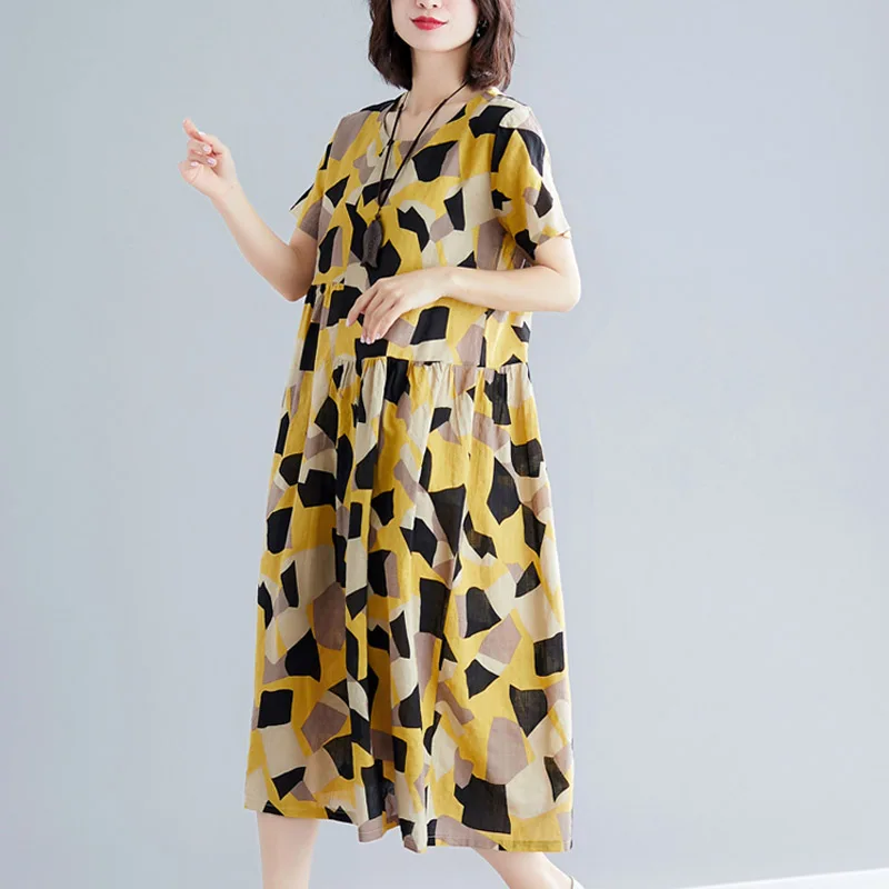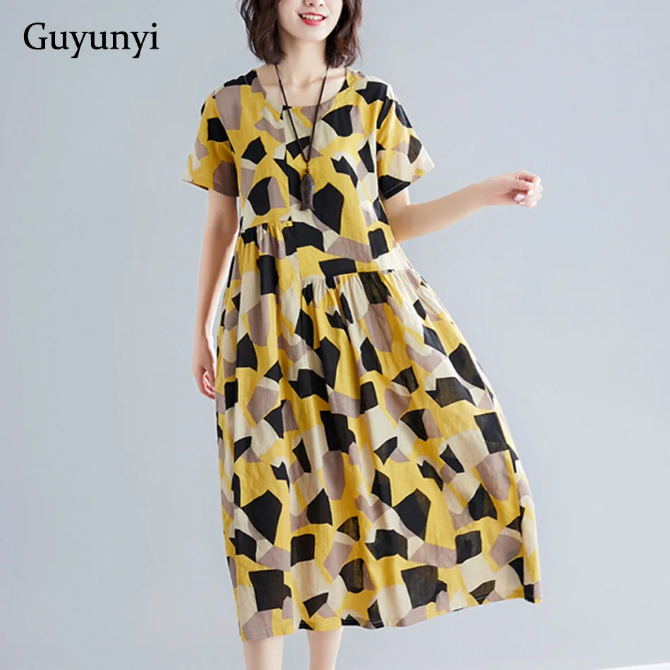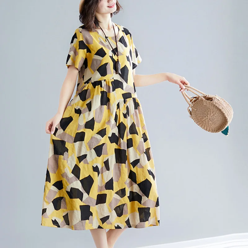 Special Offer 2019 Zomer Katoen Linnen Jurk Etnische Stijl Print Vintage Jurk Losse Zoom Eenvoudige Comfortabele Plus Size vrouwen Jurken Discount 52% Today!