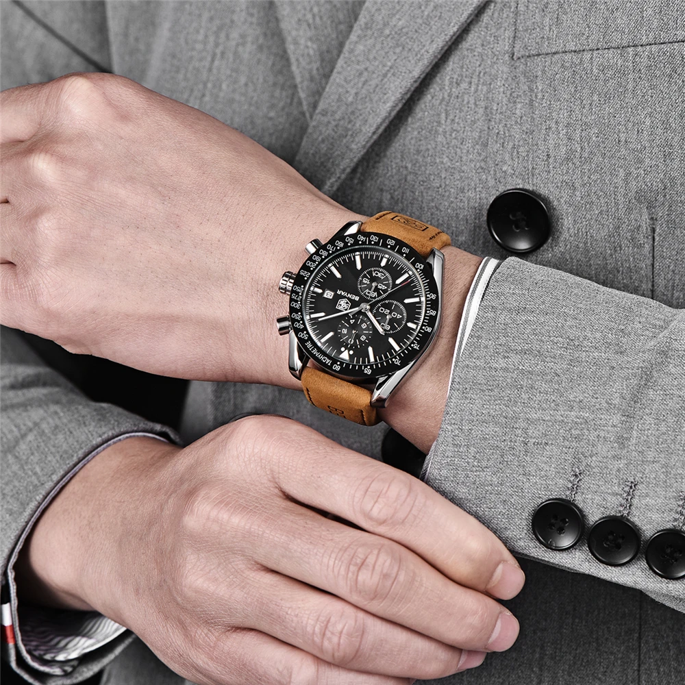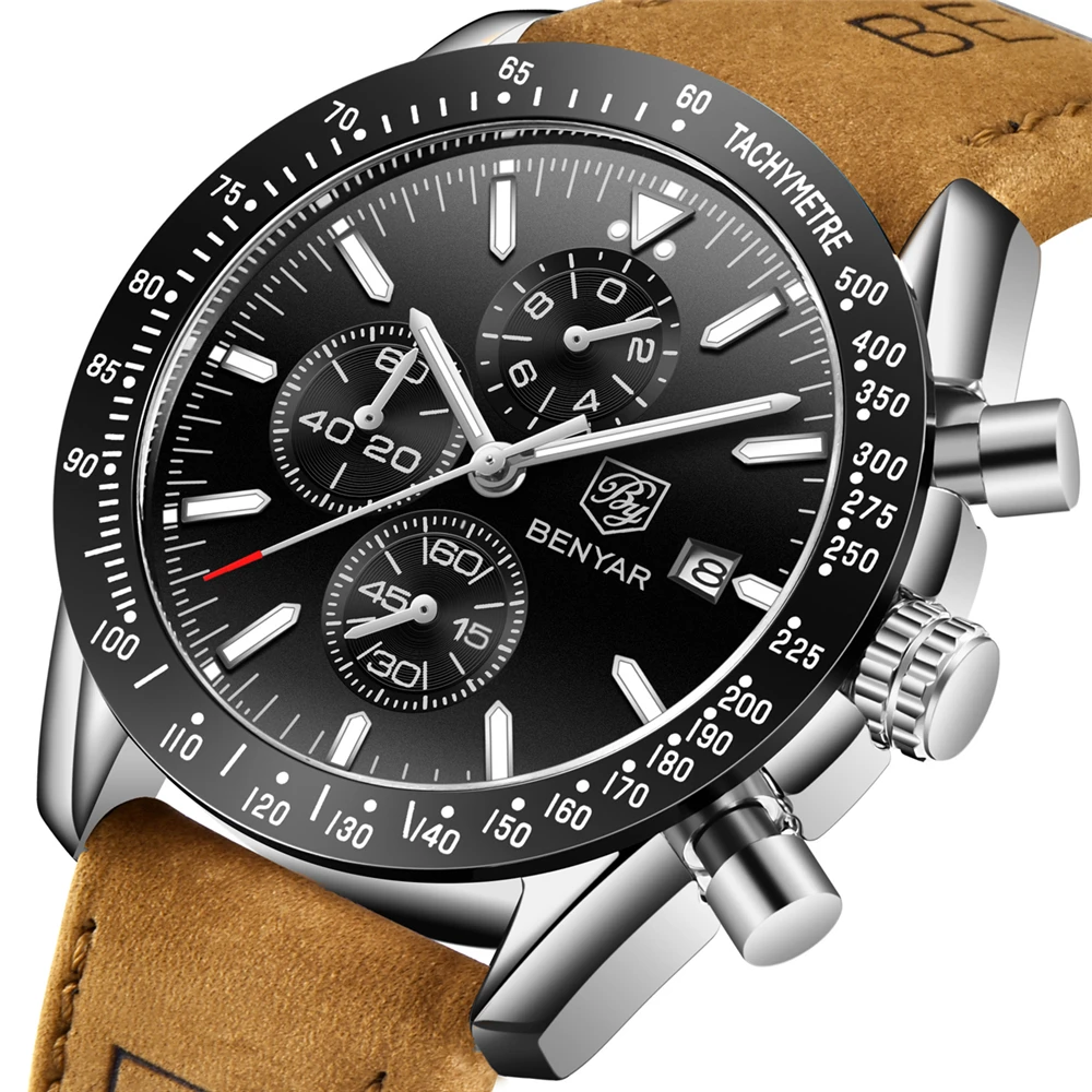Special Offer 2019 Horloge Mannen Luxe Merk BENYAR Mens Blue Horloges Lederen Band Horloges heren Chronograaf Horloge Mannelijke Relogio Masculino Discount 90% Today!