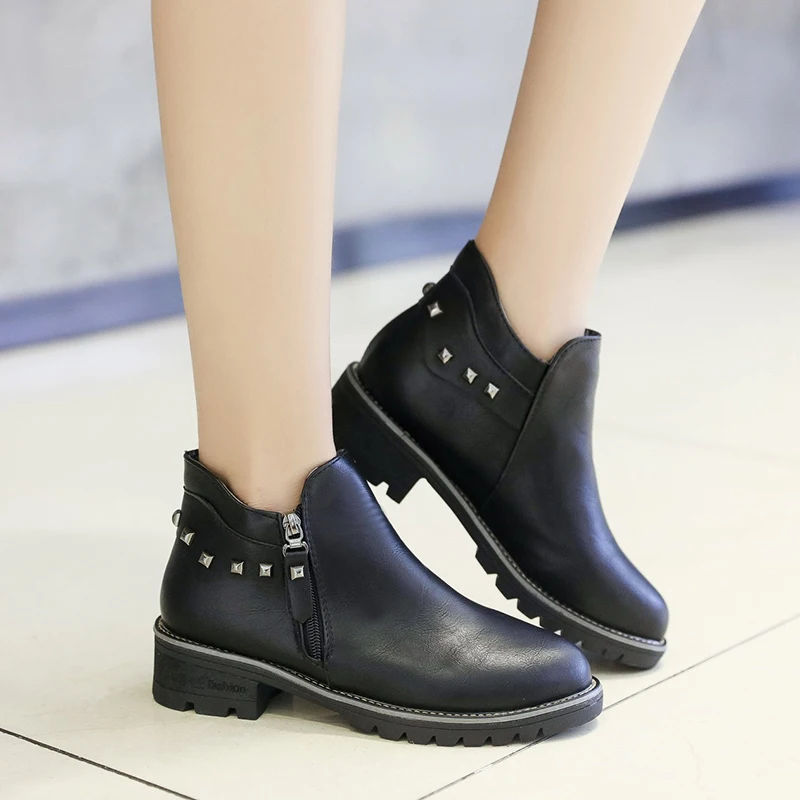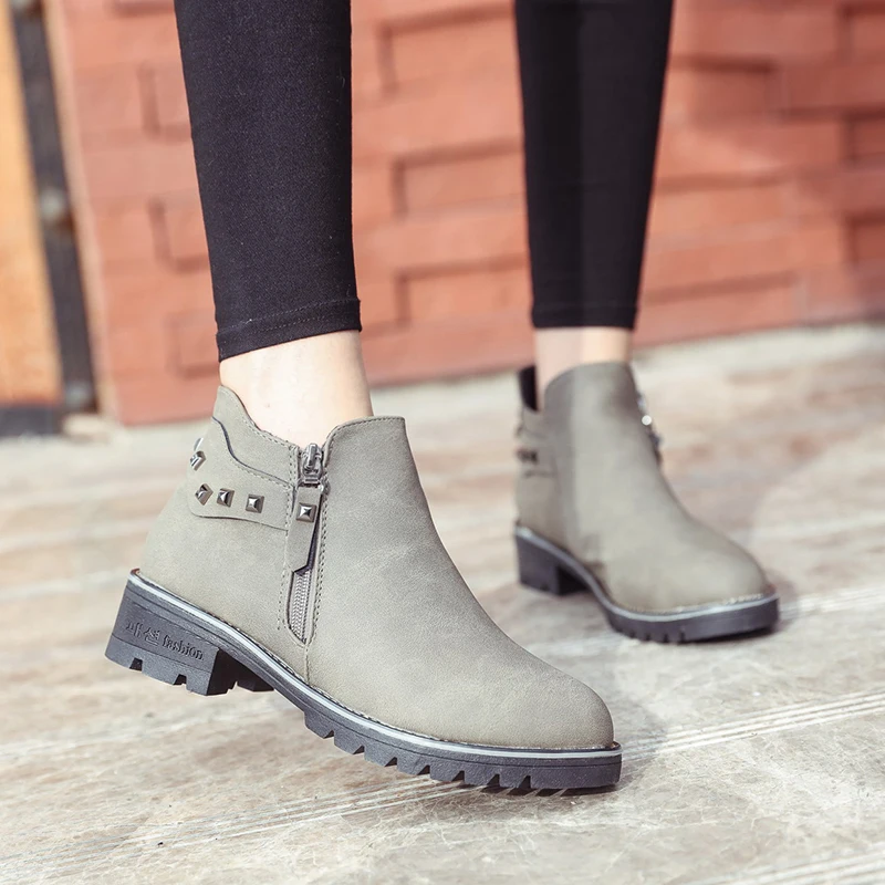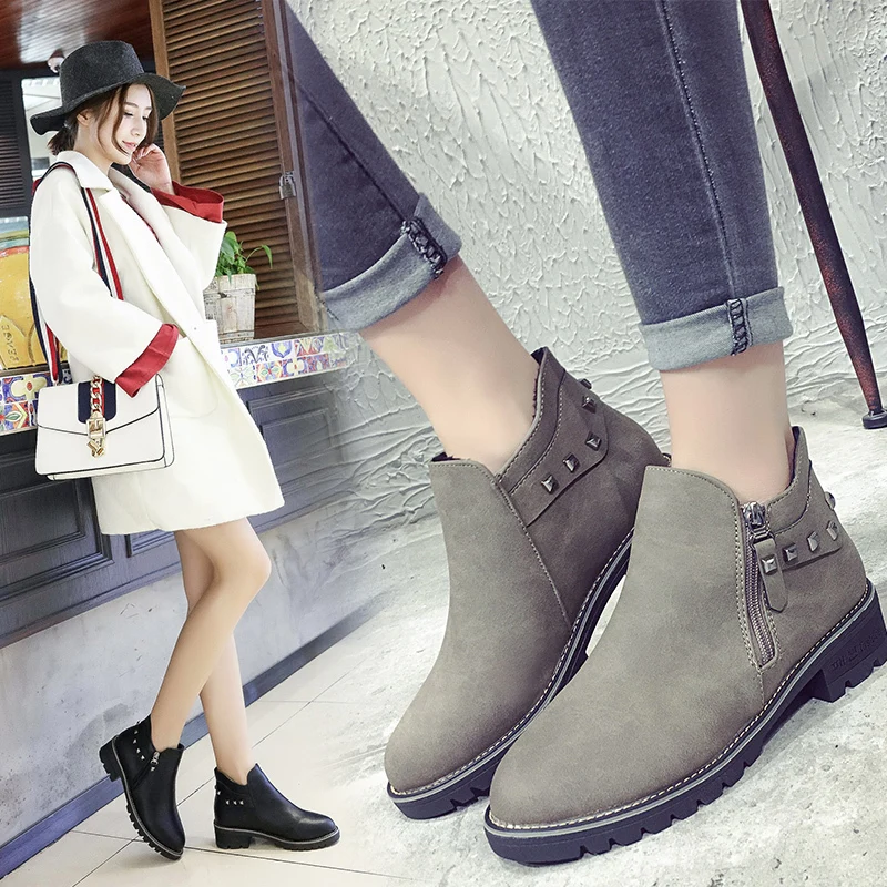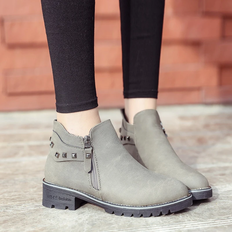 Product Name: Ronde Neus Suede Martin Laarzen Vrouwen Comfortabele Rubberen Platform Schoenen Metalen klinknagel Vrouwen Casual Laarzen Enkellaars voor Vrouwen Herfst