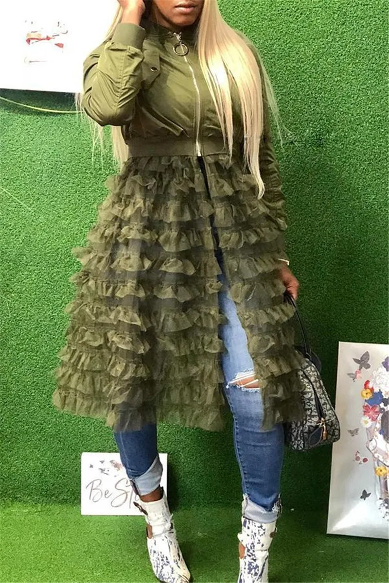 Special Offer Vrouwen Jas 2019 Mode Effen Kleur Lange Mouwen Womens Jassen Kant Ruches Mesh Stiksels Pak Elegante Overjas Lange Jassen Discount 35% Today!