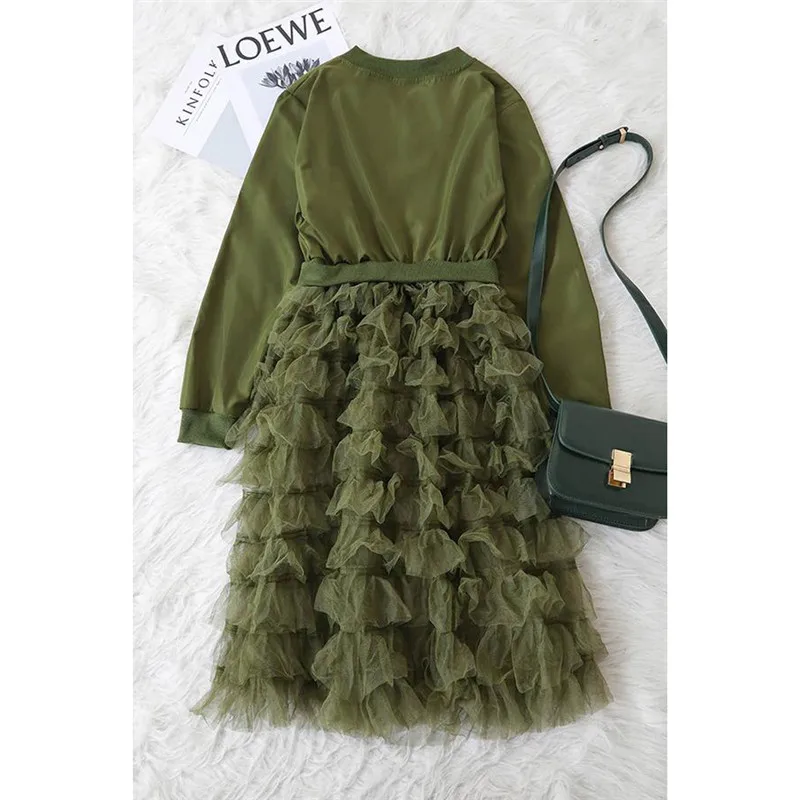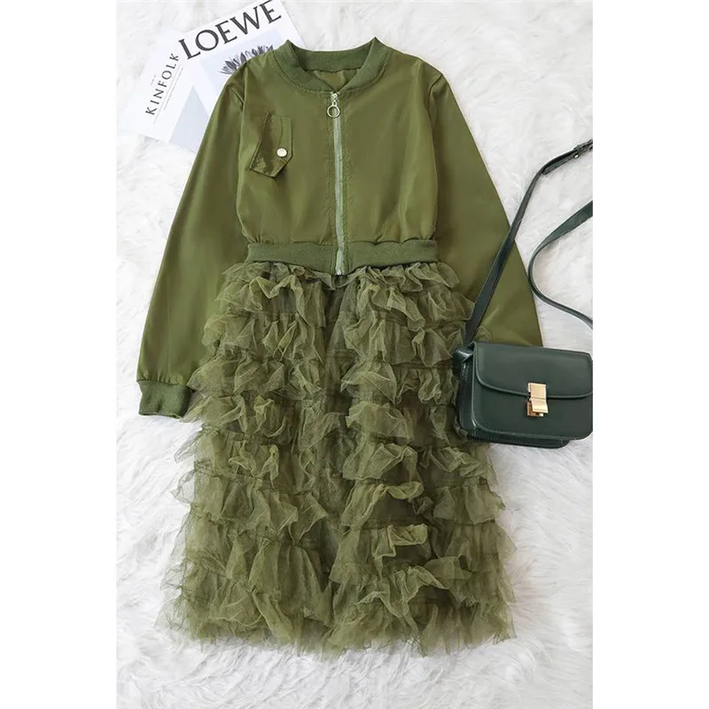 Product Name: Vrouwen Jas 2019 Mode Effen Kleur Lange Mouwen Womens Jassen Kant Ruches Mesh Stiksels Pak Elegante Overjas Lange Jassen