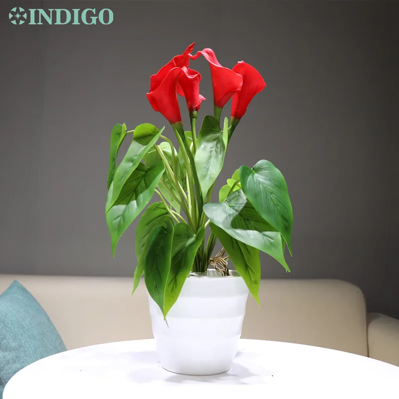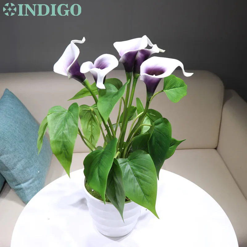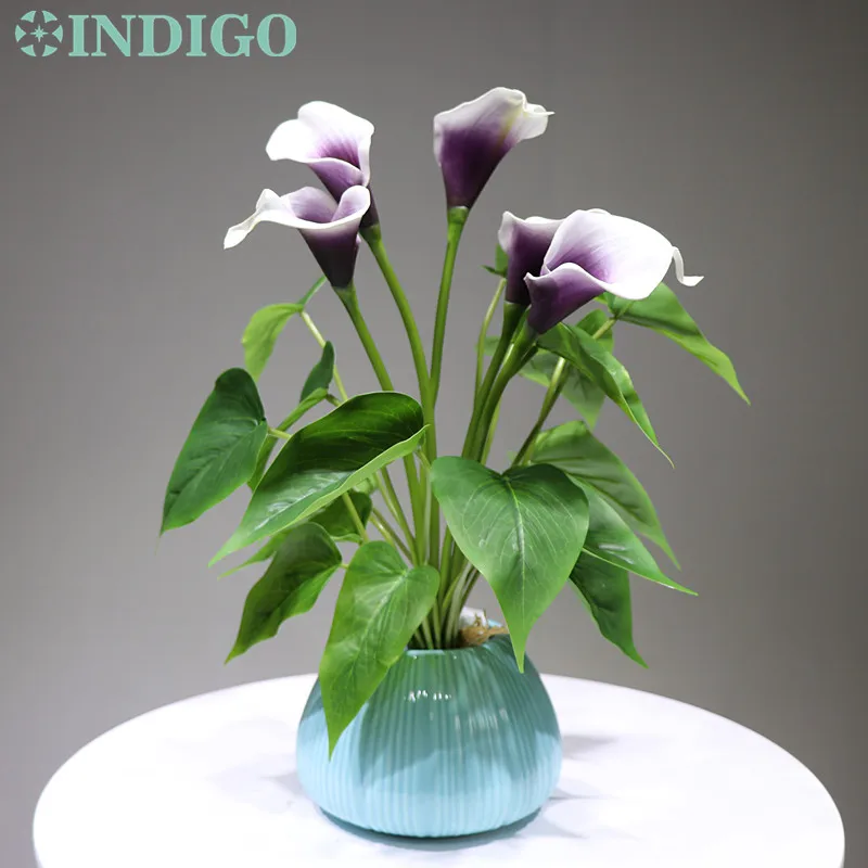 Product Name: Indigo Calla Boeket (18 Pcs Bladeren + 5 Stuks Bloemen + Wortels) real Touch Bloem (6 Kleuren) Calla Bruiloft Tafel Bloem Gratis Verzending