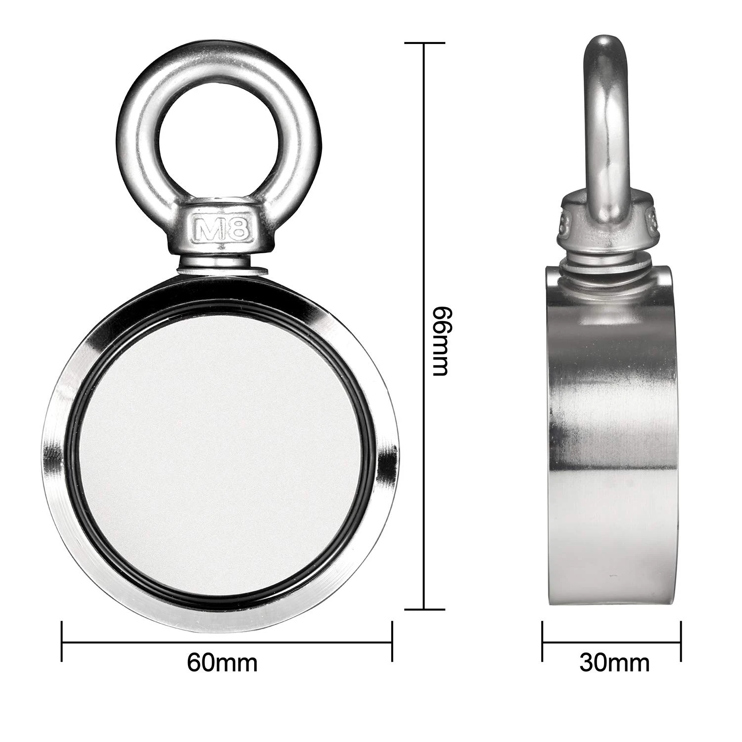 Product Name: Dubbele Side Magneet Vissen, Gecombineerd 300Kg Trekkracht, 60 Mm Diameter, super Strong Ronde Neodymium Vissen Magneet Met Eyebolt