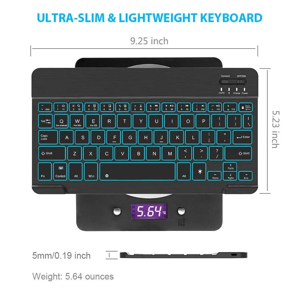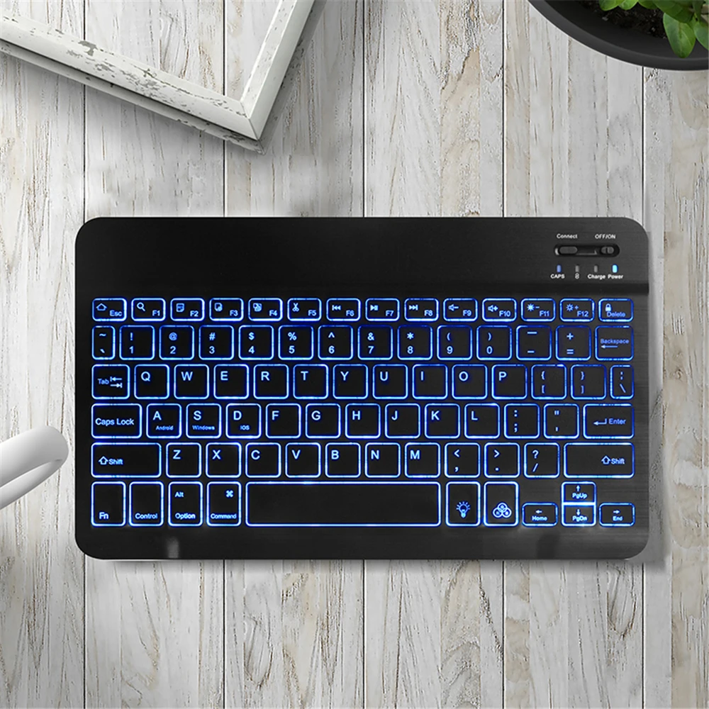 Product Name: Russisch Spaans Draadloze Bluetooth Toetsenbord Ultra Slim 7 Kleuren Led Achtergrondverlichting Voor Ipad Mini 7.9 Toetsenbord Voor Android Voor Windows