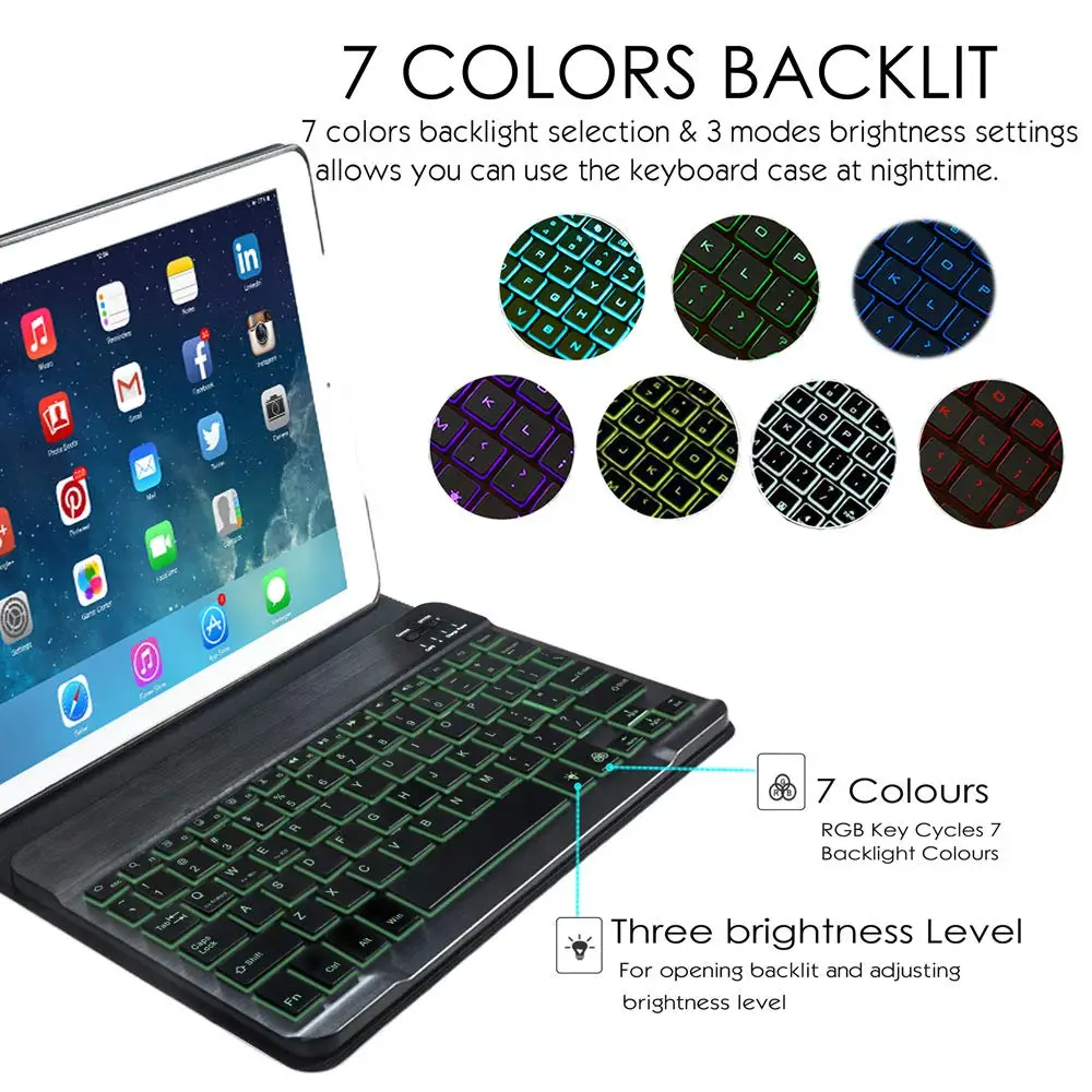 Special Offer Russisch Spaans Draadloze Bluetooth Toetsenbord Ultra Slim 7 Kleuren Led Achtergrondverlichting Voor Ipad Mini 7.9 Toetsenbord Voor Android Voor Windows Discount 20% Today!