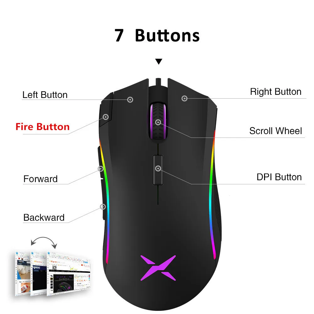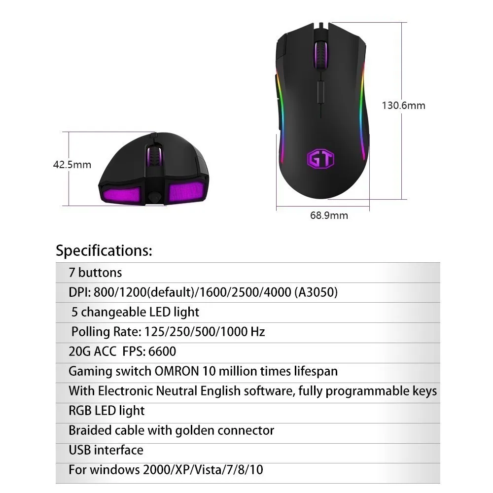 Product Name: Delux M625 A3050 Gaming Muis Optische Ergonomische Bedrade Mause Rgb Backlight 7 Knoppen 4000 Dpi Computer Gamer Muizen Voor Laptop pc