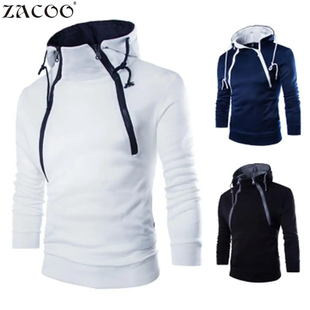 Special Offer ZACOO mannen mode t shirts Hooded Tops Casual Lange Mouwen Dubbele Rits Hooded Tees Eenvoudige Effen Kleur Hooded Tops san0 Discount 34% Today!