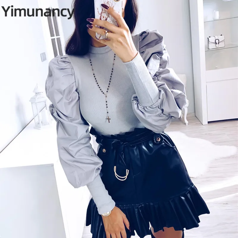 Special Offer Yimunancy Gebreide Top Vrouwen 2020 Lente 3 Kleuren Bladerdeeg Mouwen Dames Patchwork Lange Mouwen Elegant Top Blusas Streetwear Discount 40% Today!