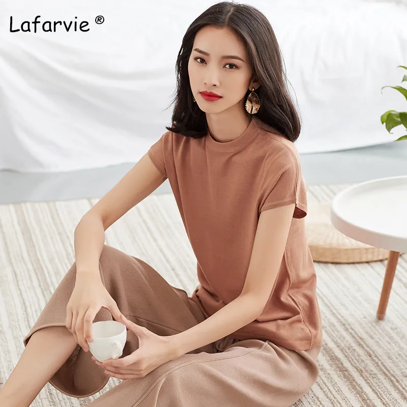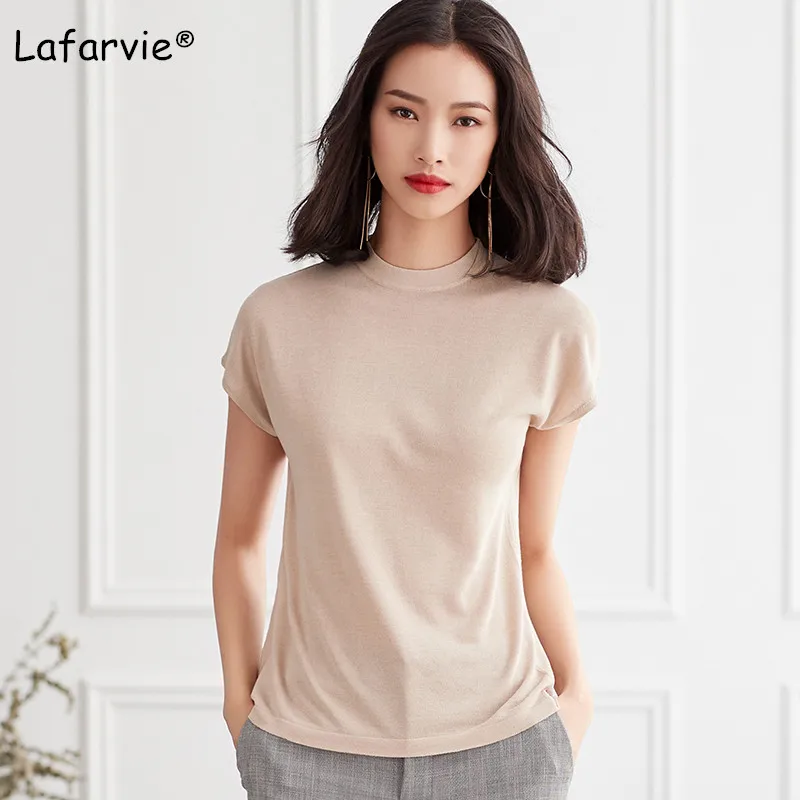 Special Offer Lafarvie Gebreide Linnen Trui Vrouwen Zomer O hals Korte Mouwen Dunne Effen Zachte Comfortabele Breien Jumper Shirt Beige M XL Discount 41% Today!